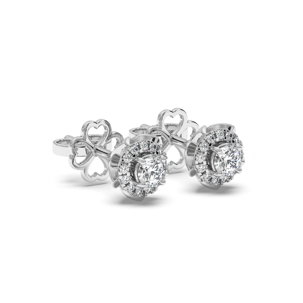 Cercei din aur alb de 14 K, cu diamante rotunde de 0.49 ct. Greutatea cerceilor este de 1.21 grame. Accesati "SPECIFICATII" pentru mai multe detalii despre acest produs. Gramajele si caratajele sunt aproximative