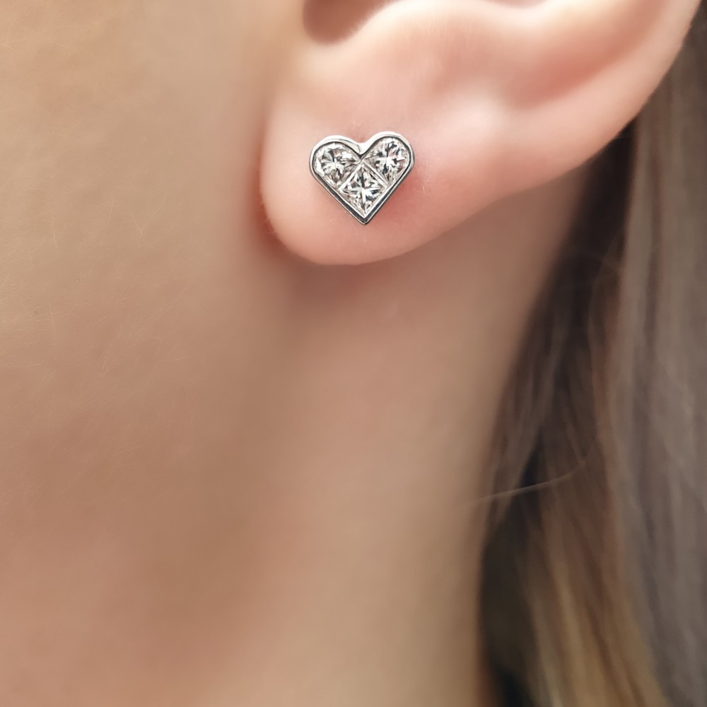 Cercei din aur alb de 18 K, cu diamante de 0.58 ct. Greutatea cerceilor este de 2.24 grame.