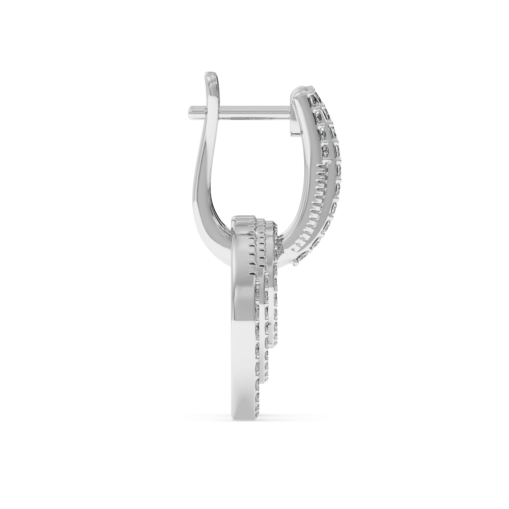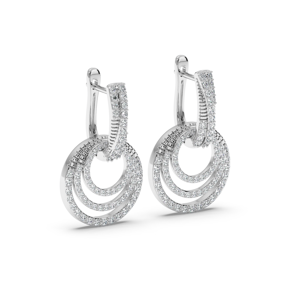 Cercei din aur alb de 14 K, cu diamante de 0.59ct. Greutatea cerceilor este de aproximativ 5 grame. Lungimea cerceilor este de aproximativ 2 cm.