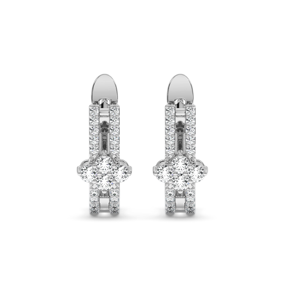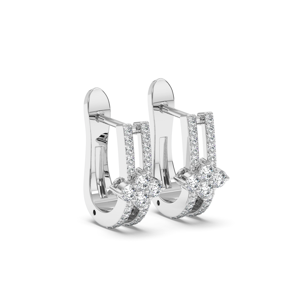Cercei din aur alb de 14 K, cu diamante de 0.61 ct. Greutatea cerceilor este de 5.8 grame. Lungimea cerceilor este de 1.8 cm. Cerceii se pot face pe comanda si din aur de 18K, galben sau rose. Putem modifica design-ul in functie de bugetul dumneavoastra.