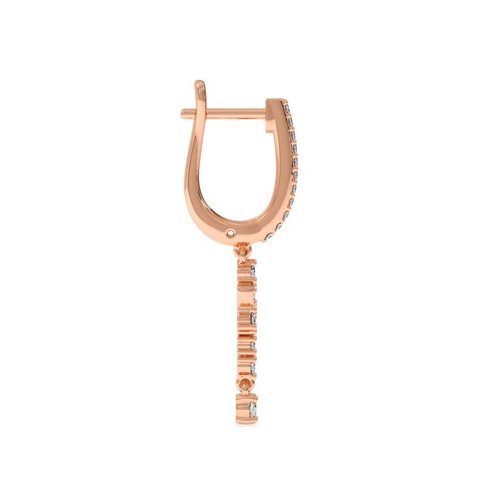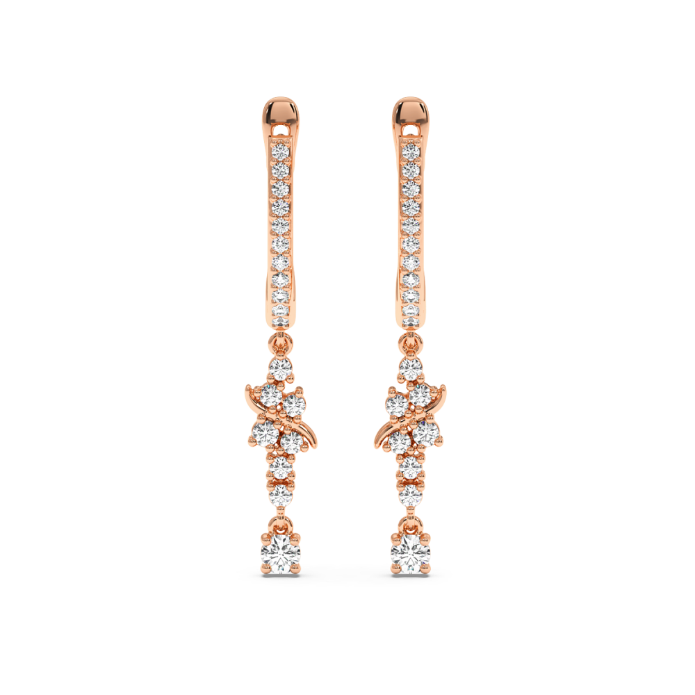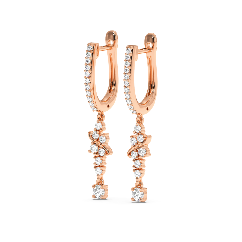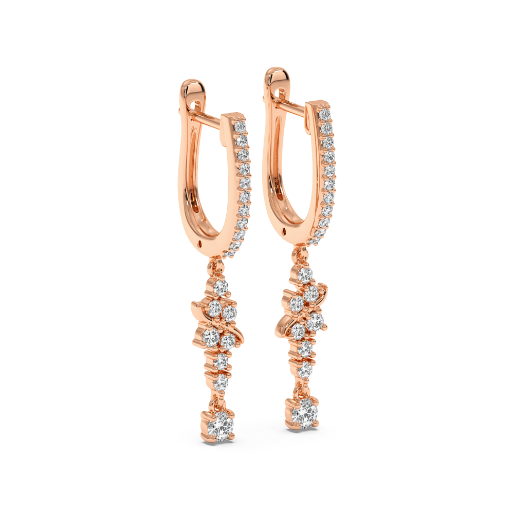 Cercei din aur alb de 14 K cu diamante de 0.63 ct. Greutatea cerceilor este de 5.25 grame. Lungimea cerceilor este de 3.3 cm