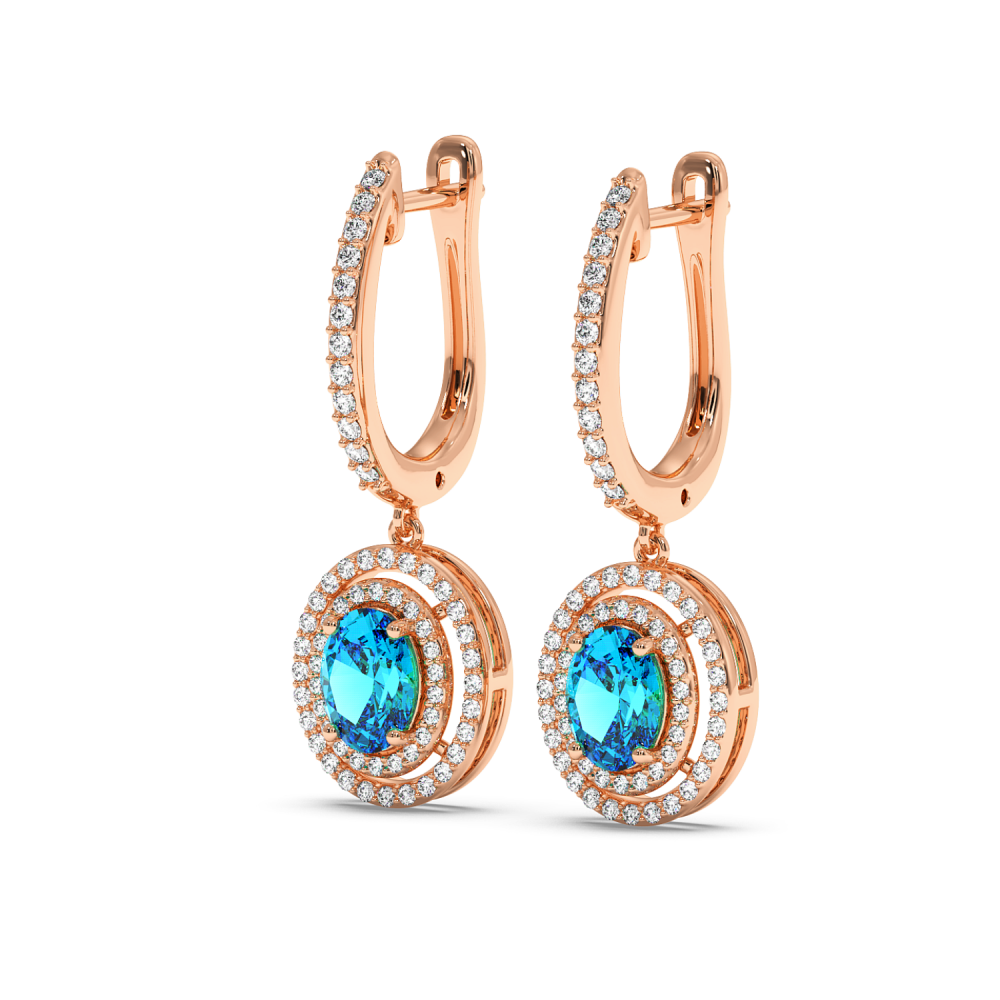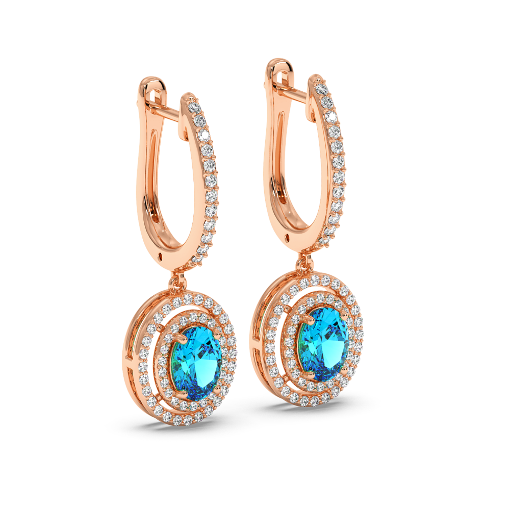 Cercei cu diamante de 0.65 ct si blue-topaz de 1.57 ct