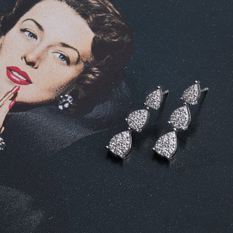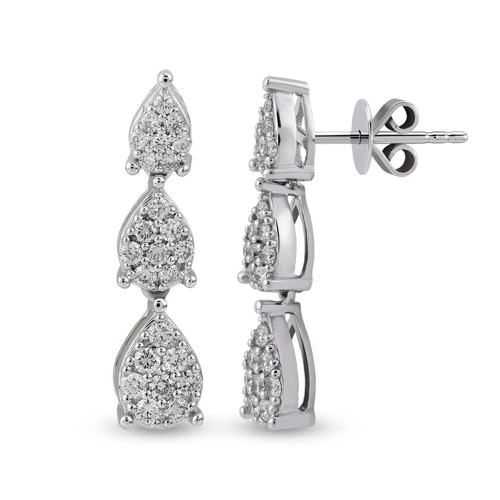 Cercei din aur alb de 14 K, cu diamante de 0.65 ct. Greutatea cerceilor este de 4.43 grame.
