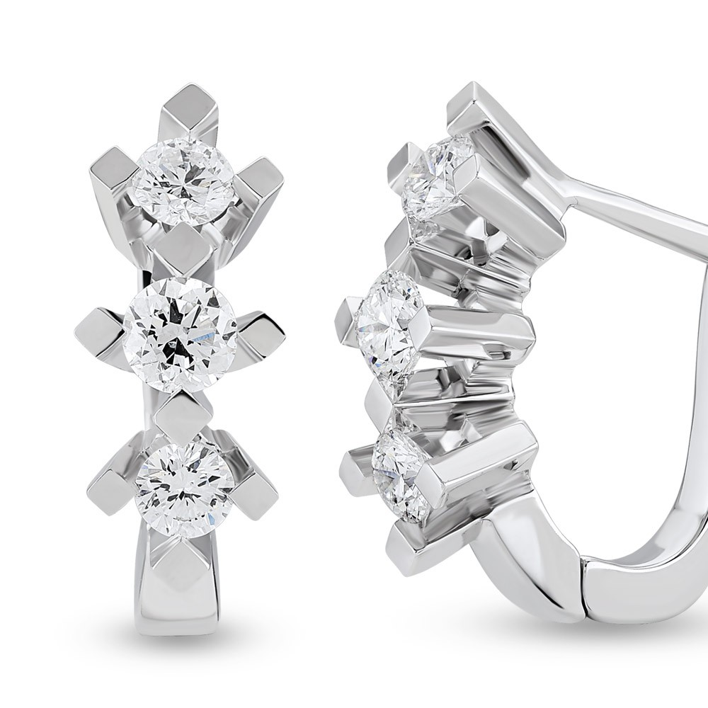 Cercei din aur alb de 18 K, cu diamante de 0.67 ct. Greutatea cerceilor este de 3.56 grame.