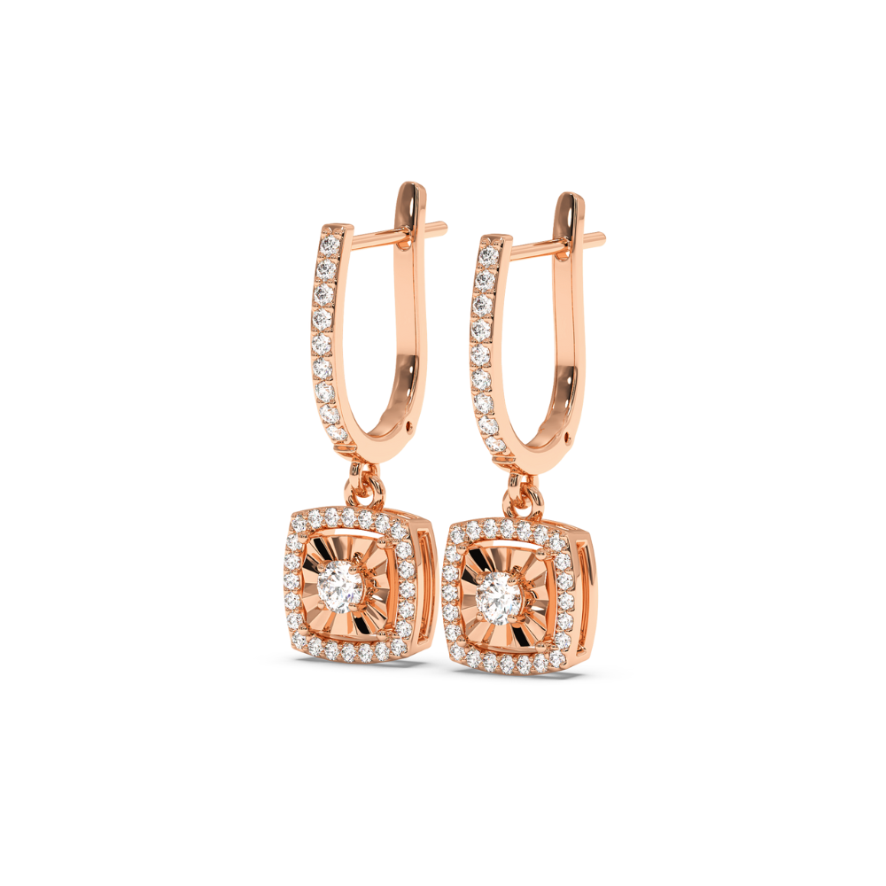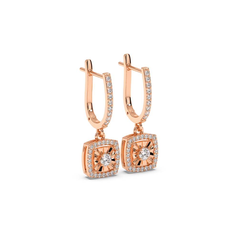 Cercei din aur alb de 14 K cu diamante de 0.69 ct. Greutatea cerceilor este de aproximativ 5,31 grame. Cerceii se pot confectiona din aur rose, alb sau galben.