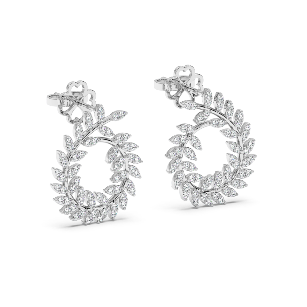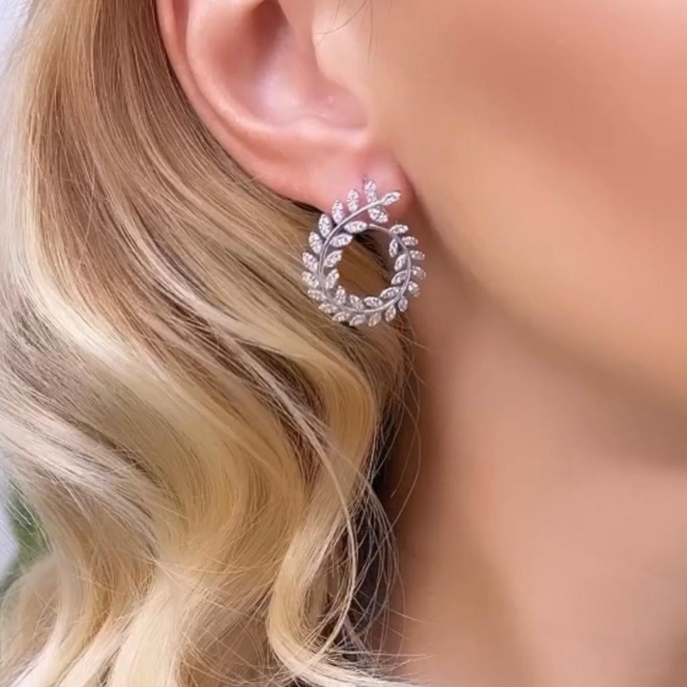 Cercei din aur alb de 14 K, cu diamante de 0.70 ct. Greutatea cerceilor este de 5.36 grame.