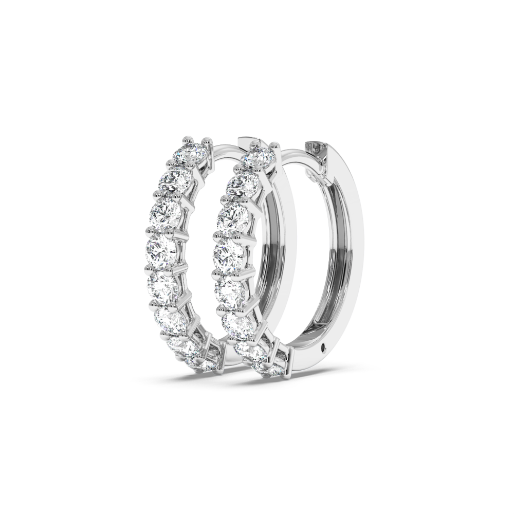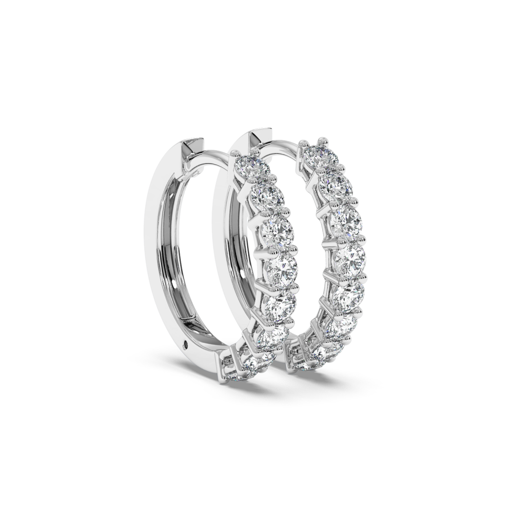 Cercei din aur alb de 14 K, cu diamante de 0.70 ct și o greutate de aproximativ 2.45 gr.
