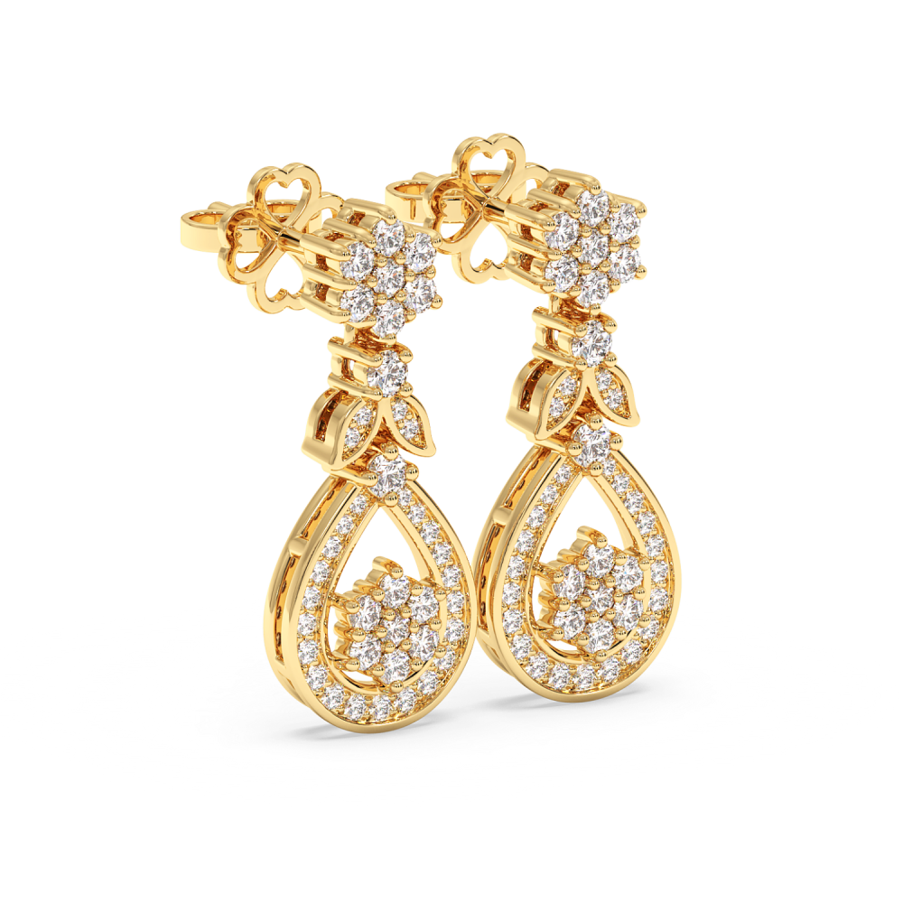 Cercei din aur de 14 K cu diamante de 0.71ct. Greutatea cerceilor este de aproximativ 3.90 grame. Cerceii se pot face pe comanda si din aur de 18K, galben sau rose. Putem modifica design-ul in functie de bugetul dumneavoastra. Putem alege caracteristicile diamantelor (taietura, culoarea,...