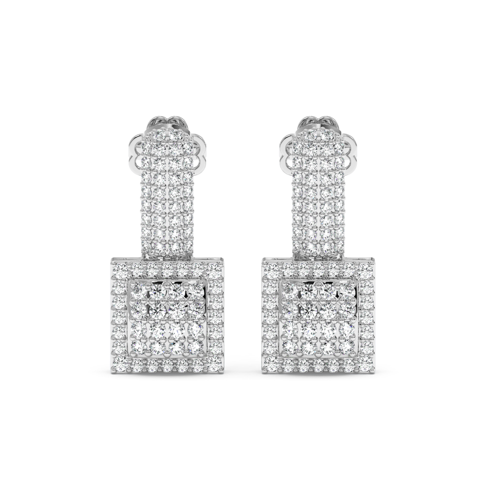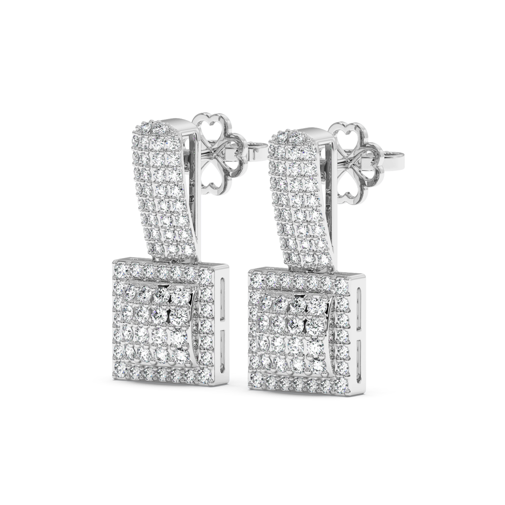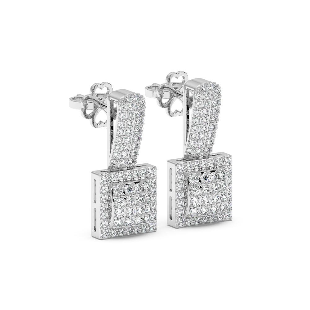 Cercei din aur alb de 14 K, cu diamante de 0.72ct. Greutatea cerceilor este de aproximativ 5 grame. Lungimea cerceilor este de aproximativ 1.90 cm.