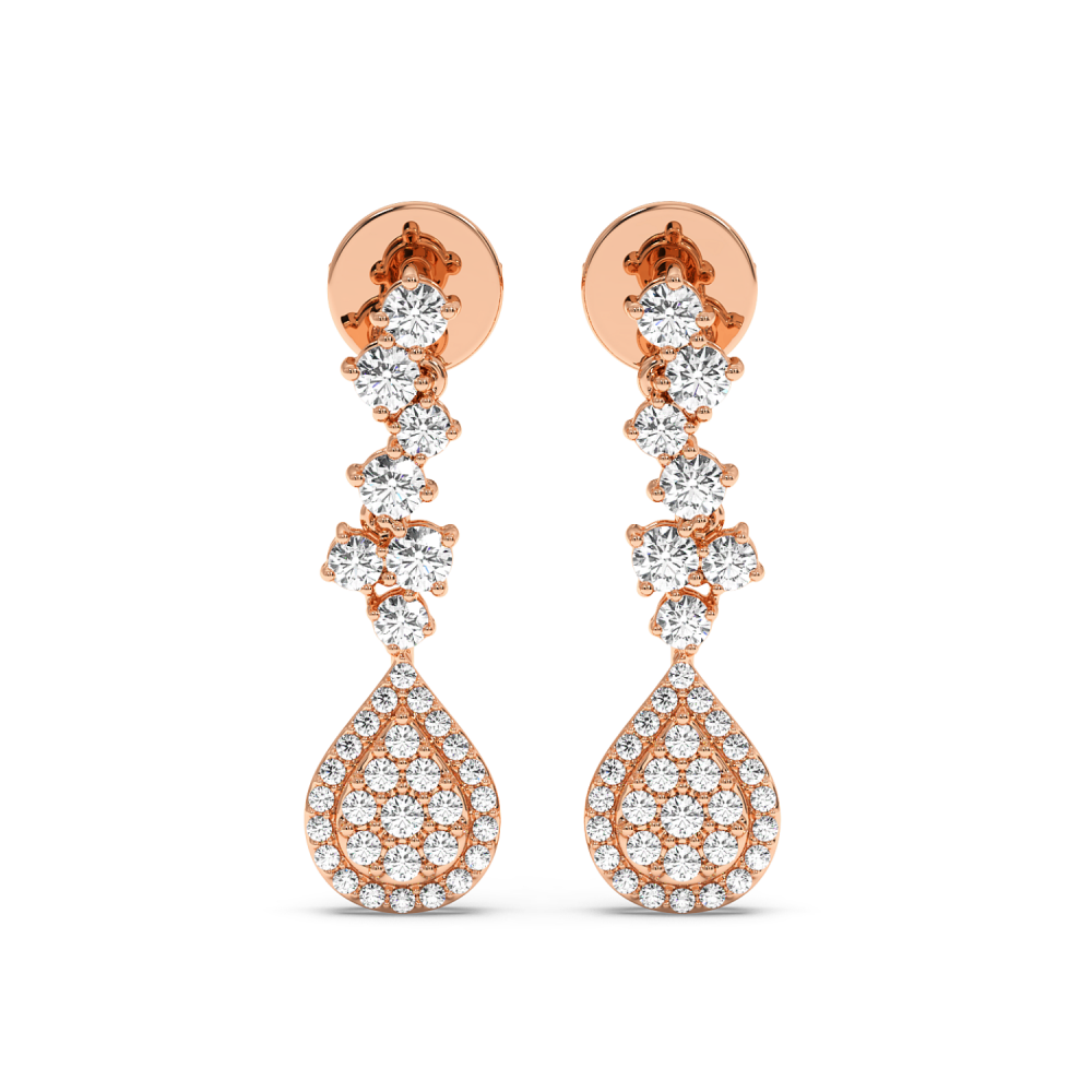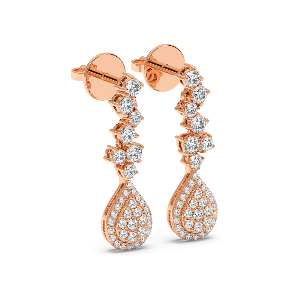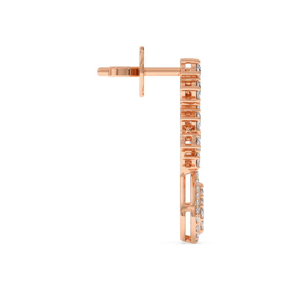 Cercei din aur alb de 14K, cu diamante de 0.73 ct. Greutatea cerceilor este de 3.7 grame. Lungimea cerceilor este de 2.2 cm
