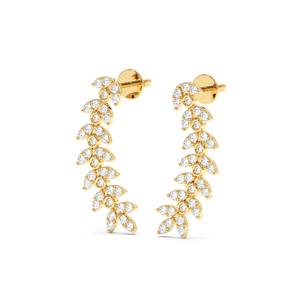 Cercei din aur alb de 14 K, cu diamante de 0.74 ct. Greutatea cerceilor este de 3.2 grame. Lungimea cerceilor este de 2.3 cm