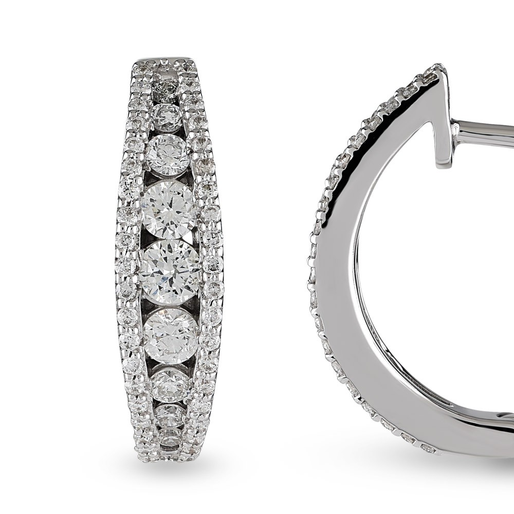 Cercei din aur alb de 14 K, cu diamante de 0.79 ct. Greutatea cerceilor este de 4.80 grame.
