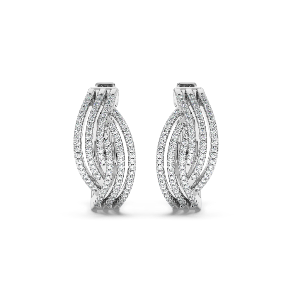 Cercei din aur alb de 14 K, cu diamante de 0.79 ct. Greutatea cerceilor este de 6.5 grame. Lungimea cerceilor este de 2.1 cm