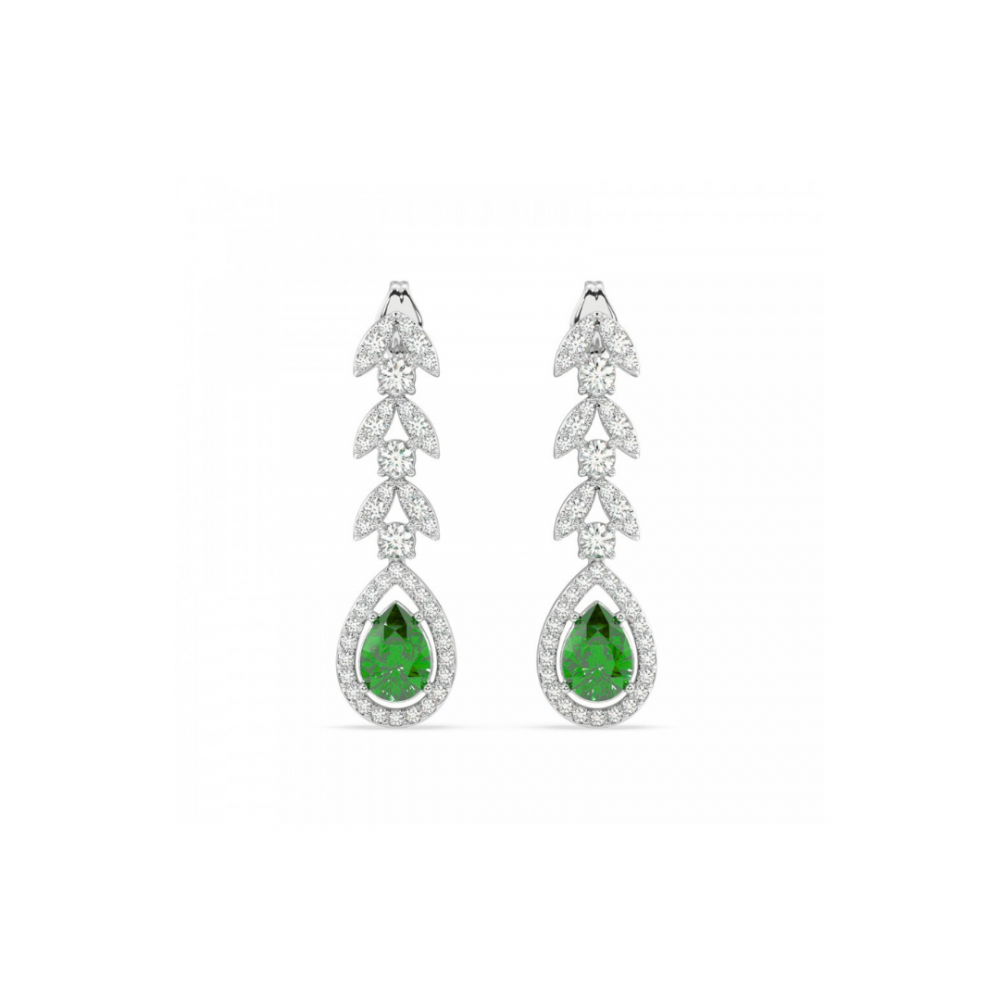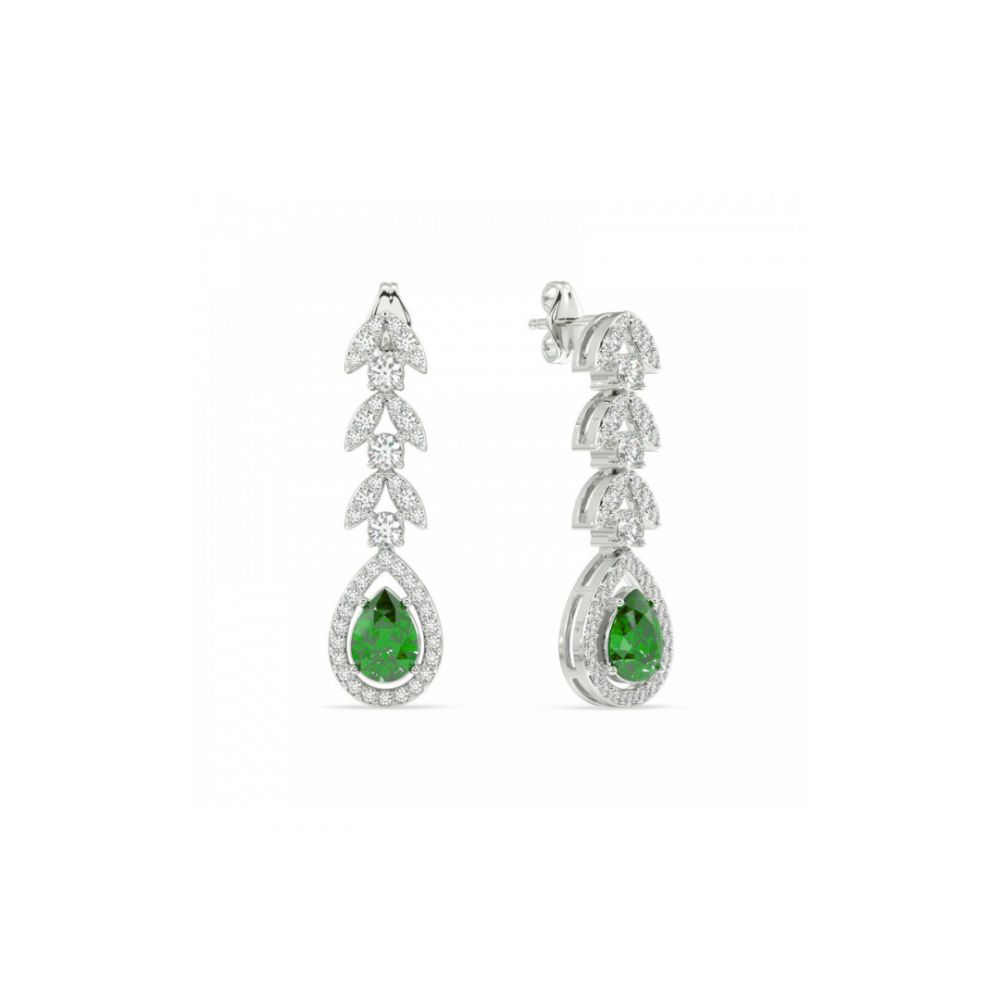 Cercei din aur alb de 14K, cu diamante de 0.81 ct si Smaralde de 1.13 ct. Greutatea cerceilor este de 3.17 grame.