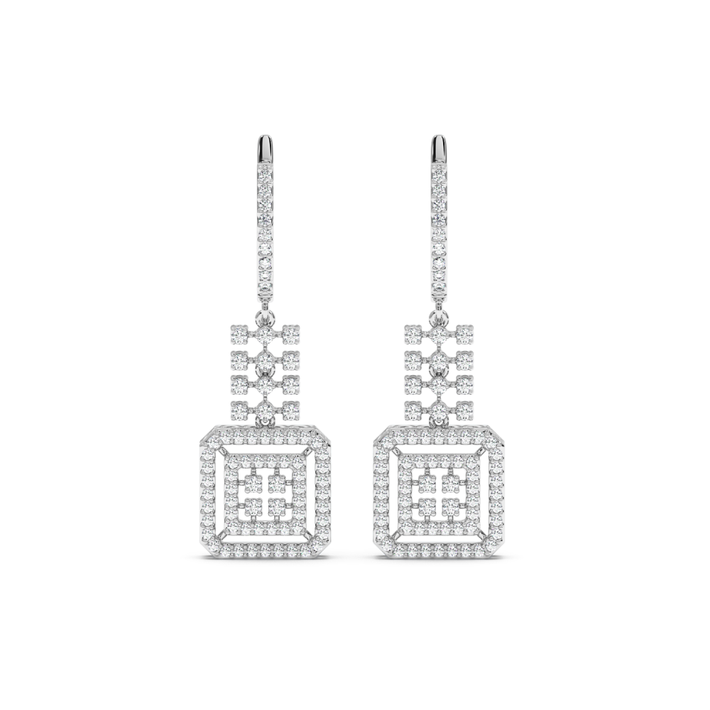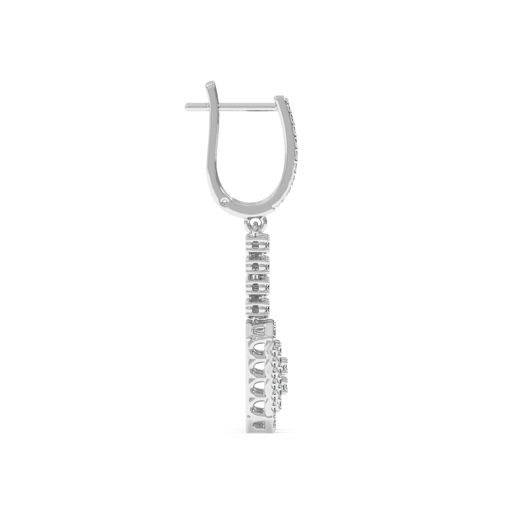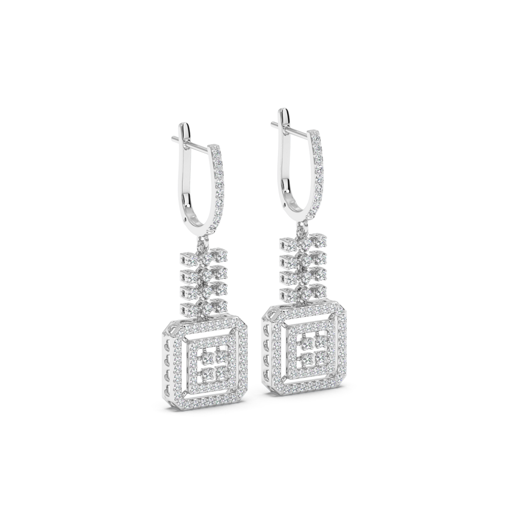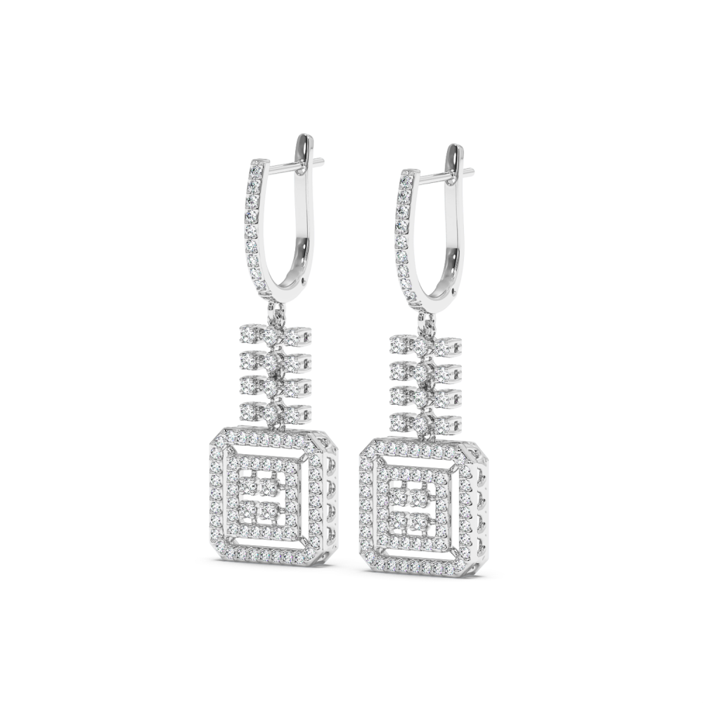 Cercei din aur alb de 14 K, cu diamante de 0.81ct. Greutatea cerceilor este de aproximativ 7.70 grame. Lungimea cerceilor este de aproximativ 3.50 cm.