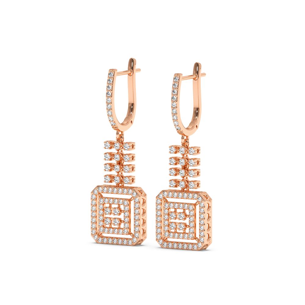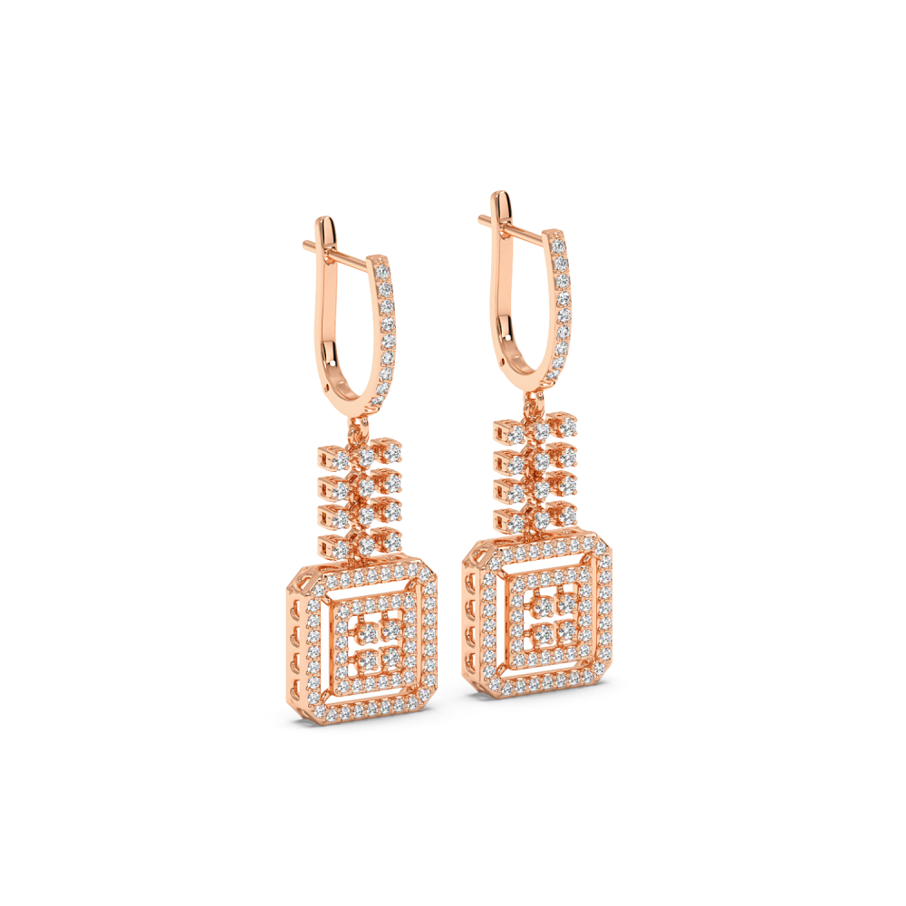 Cercei din aur alb de 14 K, cu diamante de 0.81ct. Greutatea cerceilor este de aproximativ 7.70 grame. Lungimea cerceilor este de aproximativ 3.50 cm.