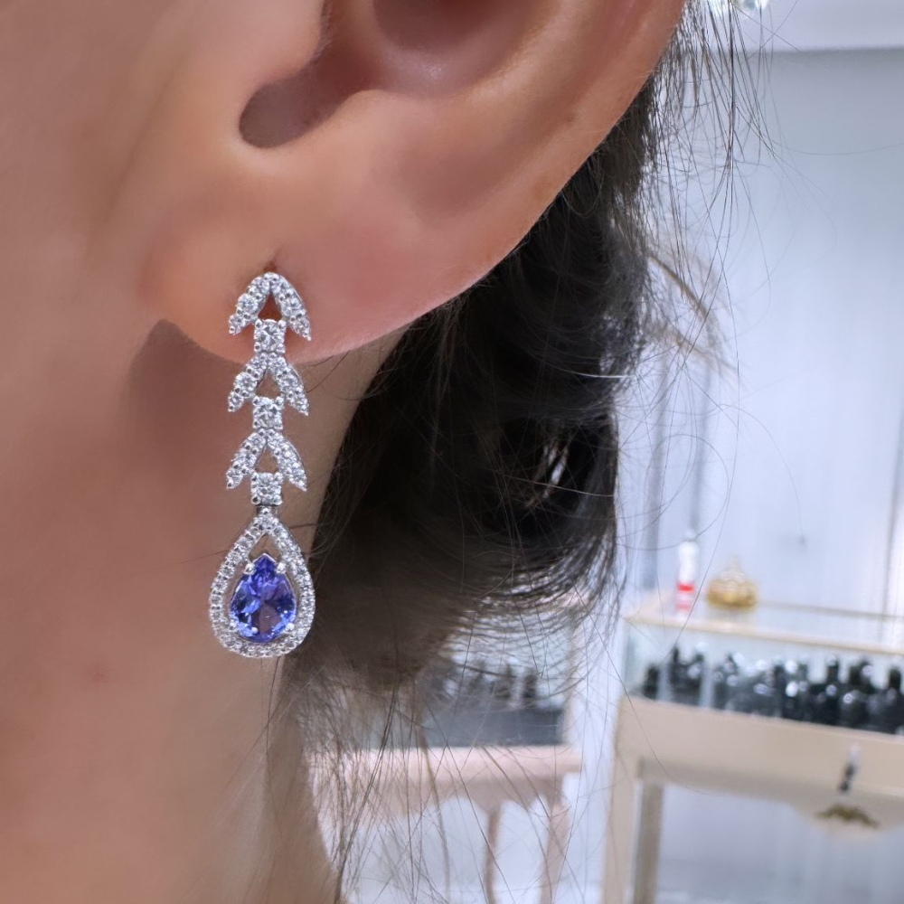 Cercei cu diamante de 0.85 ct si Tanzanite de 1.25 ct