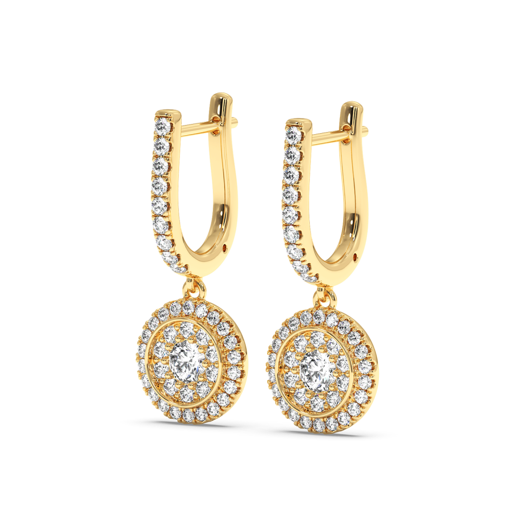 Cercei din aur de 14 K, cu diamante de 0.87ct. Greutatea cerceilor este de aproximativ 3.90 grame. Cerceii se pot face pe comanda si din aur de 18K, galben sau rose. Putem modifica design-ul in functie de bugetul dumneavoastra. Putem alege caracteristicile diamantelor (taietura, culoarea,...