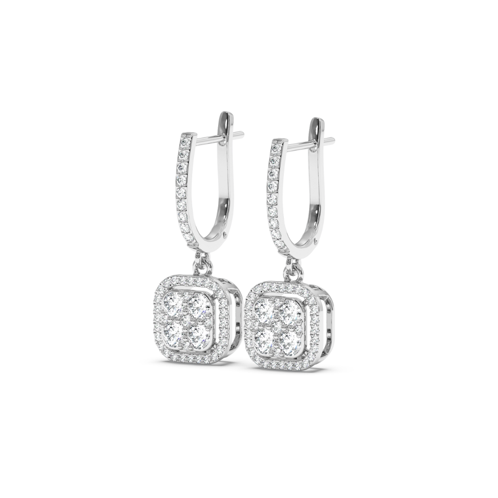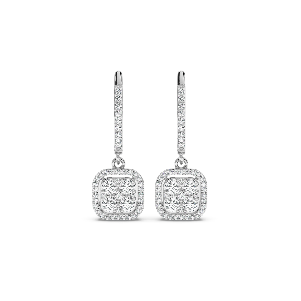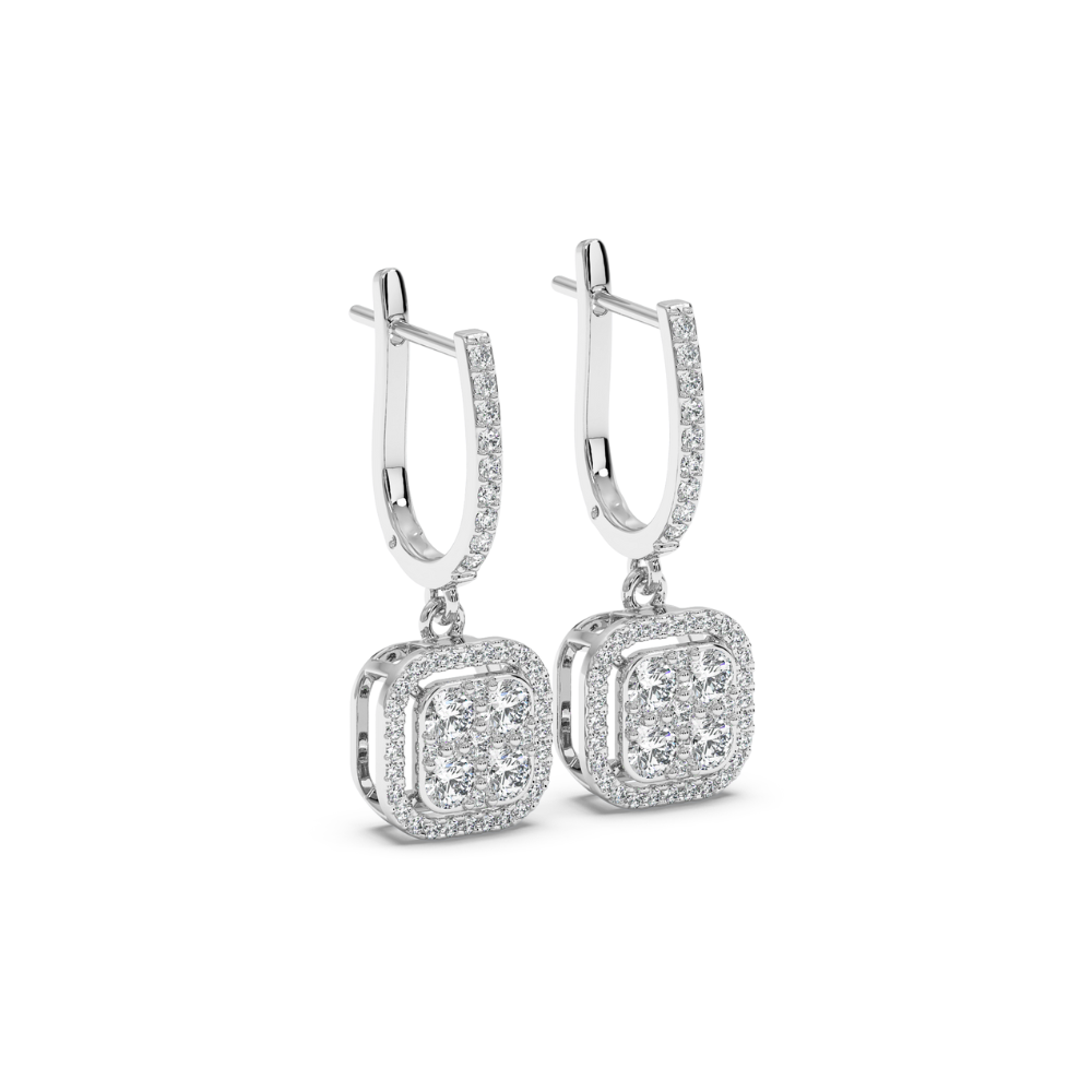 Cercei din aur galben de 14K, cu diamante de 0.89 ct. Greutatea cerceilor este de 4.36 grame. Cerceii se pot confectiona si din aur rose sau alb