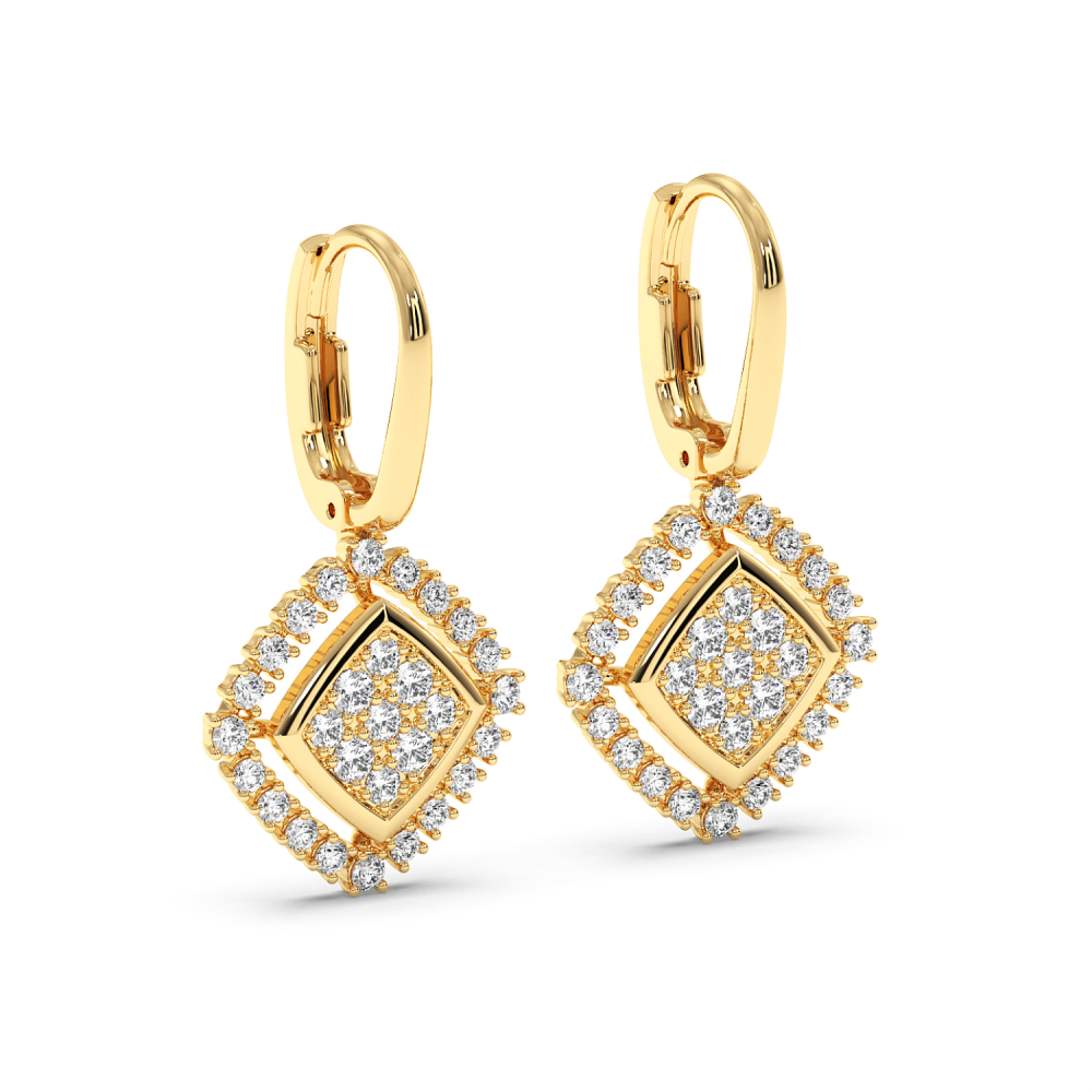 Cercei din aur de 14 K, cu diamante de 0.93ct. Greutatea cerceilor este de aproximativ 4.10 grame.