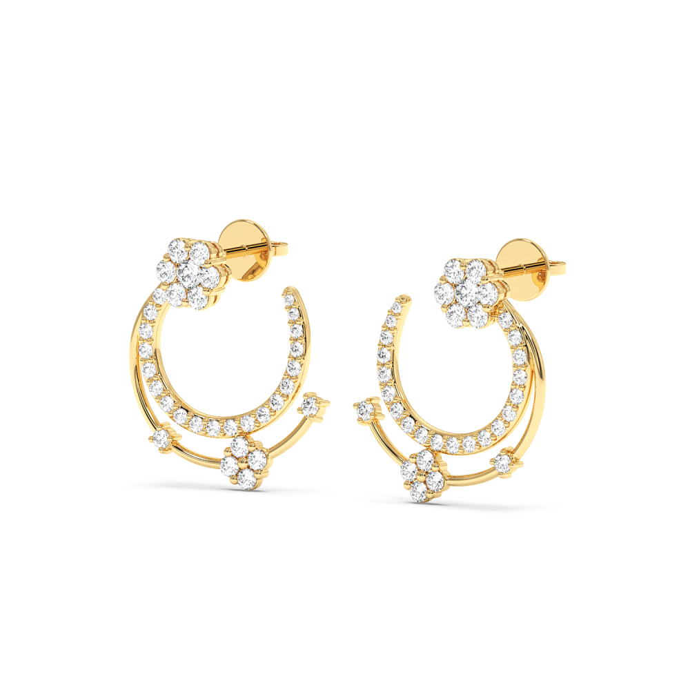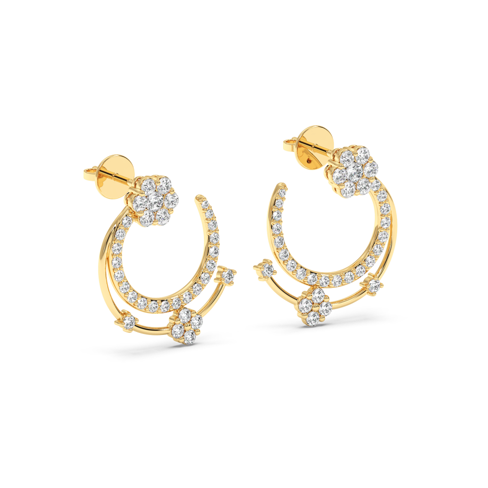 Cercei din aur rose de 14 K, cu diamante de 0.95 ct. Greutatea cerceilor este de 2.5 grame. Lungimea cerceilor este de 1.8 cm
