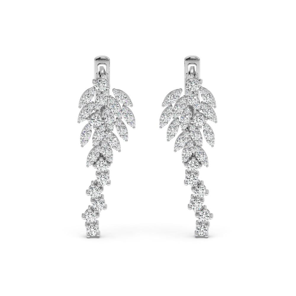 Cercei din aur alb de 14K, cu diamante de 1.04 carate. Greutatea cerceilor este de 15.68 grame. Lungimea cerceilor este de 2.70 cm