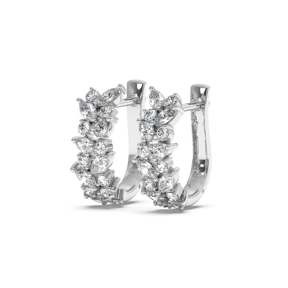 Cercei din aur alb de 14 K, cu diamante de 1.06 ct. Greutatea cerceilor este de 4.10 grame.