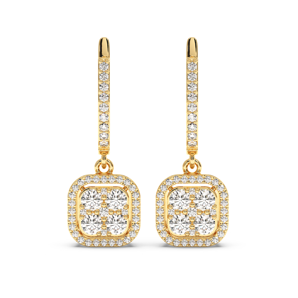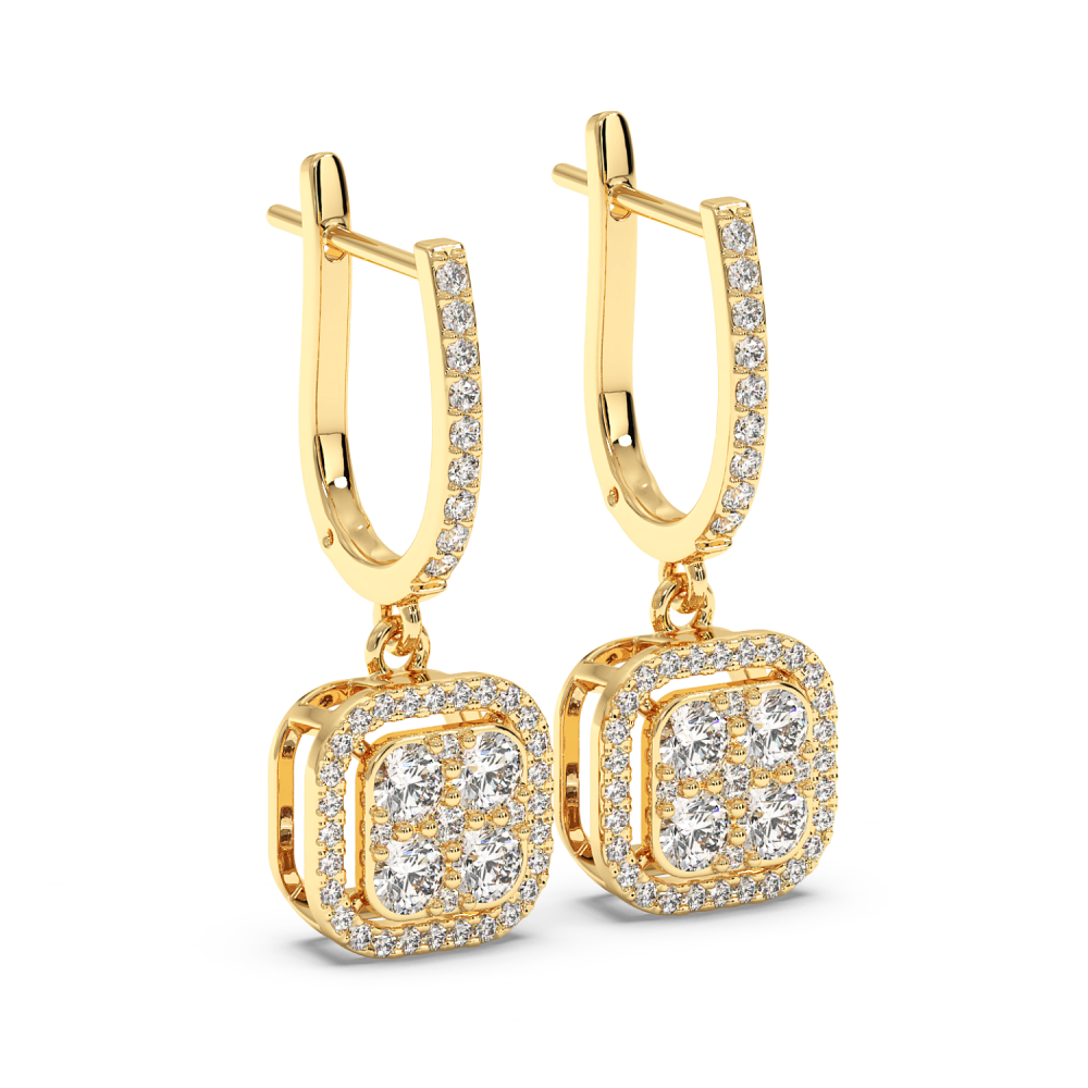 Cercei din aur galben de 14K, cu diamante de 1.15 ct. Greutatea cerceilor este de 4.59 grame.