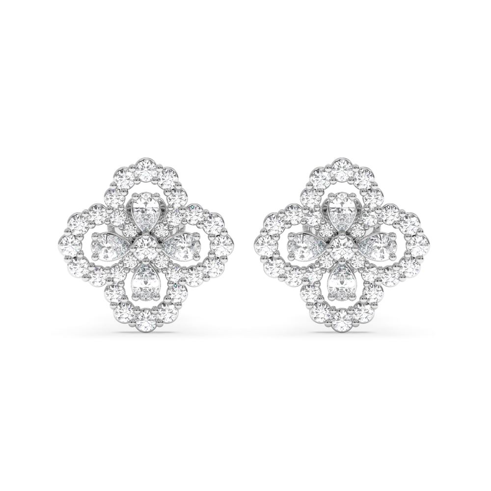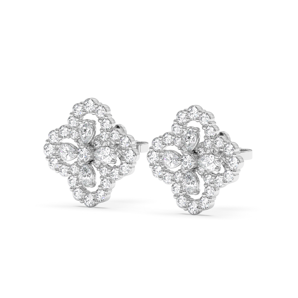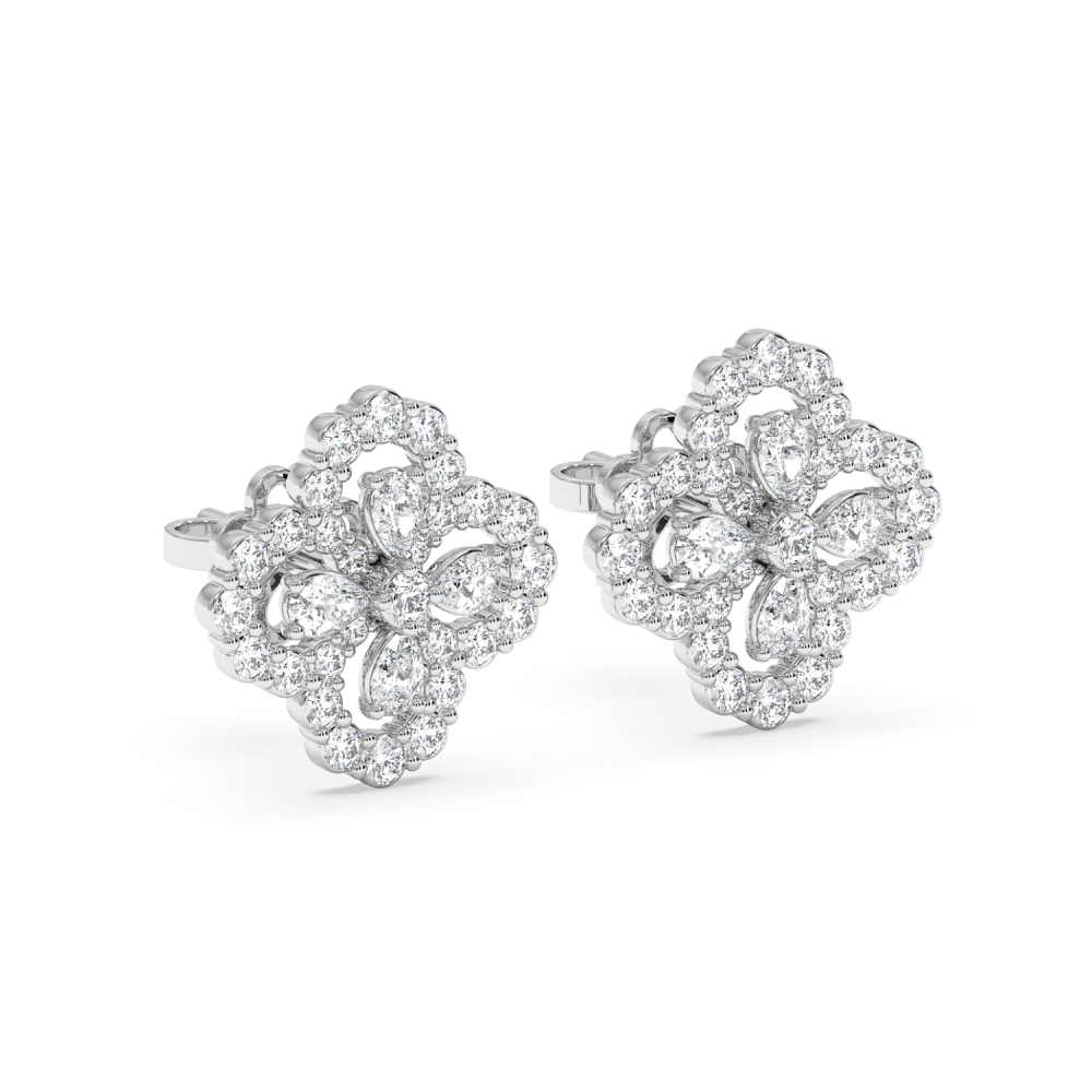 Cercei din aur alb de 14 K, cu diamante de 1.23ct. Greutatea cerceilor este de aproximativ 2.30 grame. Cerceii se pot face pe comanda si din aur de 18K, galben sau rose. Putem modifica design-ul in functie de bugetul dumneavoastra. Putem alege caracteristicile diamantelor (taietura, culoarea,...