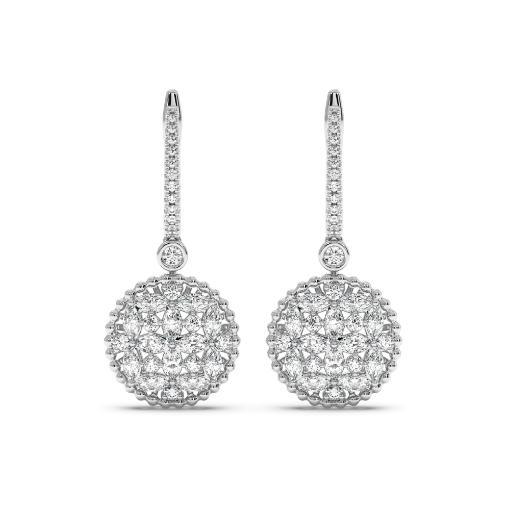 Cercei din aur alb de 14 K, cu diamante de 1.33 ct. Greutatea cerceilor este de 5.75 grame.
