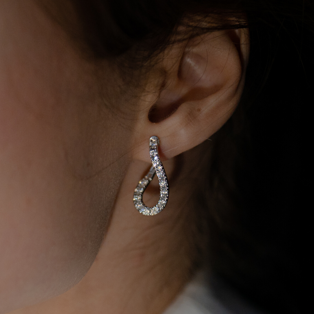 Cercei din aur alb de 18K, cu diamante de 1.47 carate. Greutatea cerceilor este de 5.99 grame.