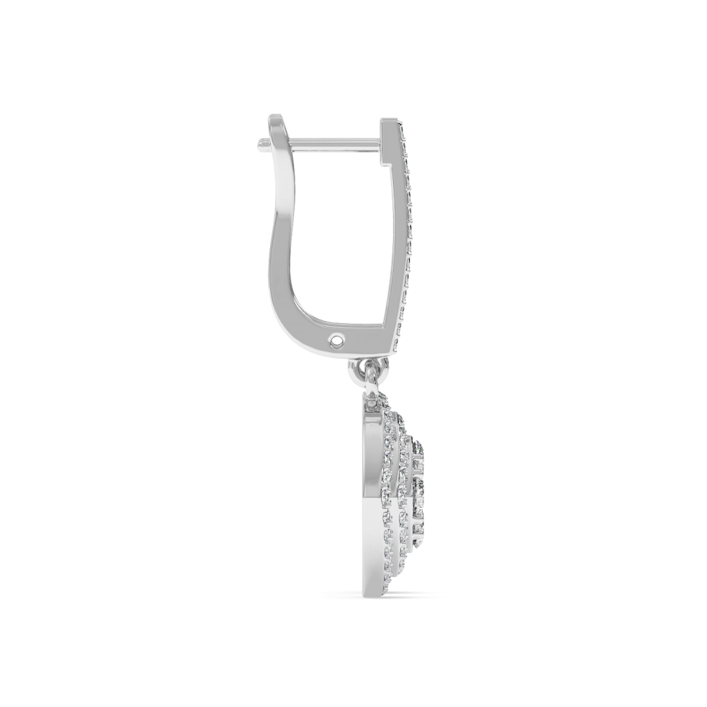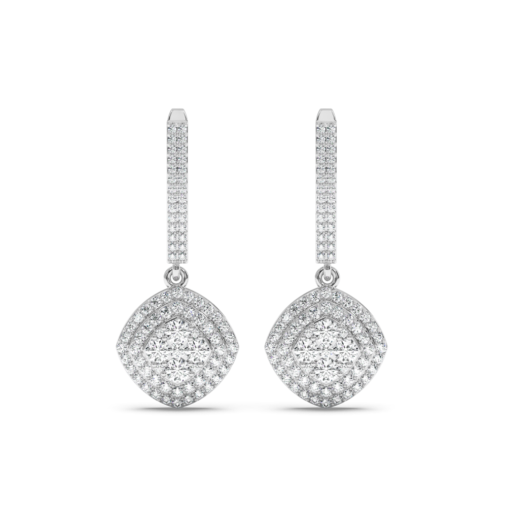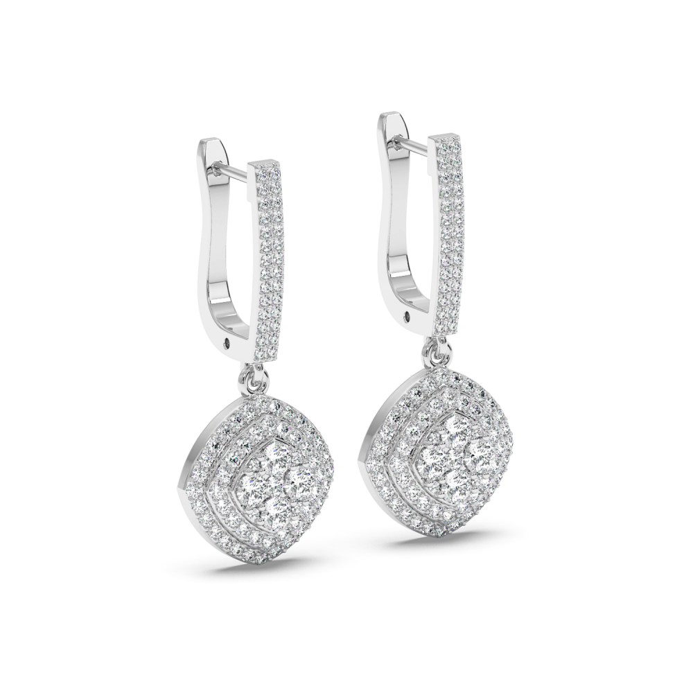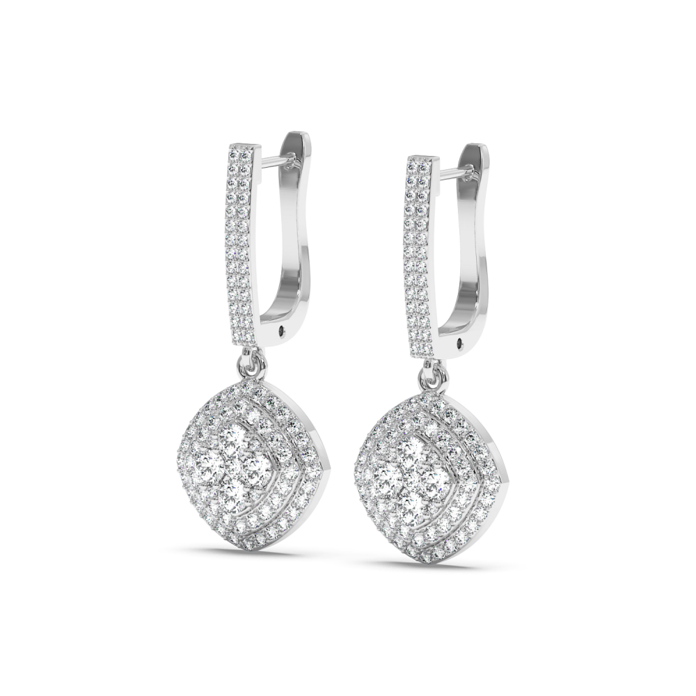 Cercei din aur alb de 14 K, cu diamante de 1.55 ct. Greutatea cerceilor este de aprox. 5.09 grame. Lungimea cerceilor este de 3.10 cm