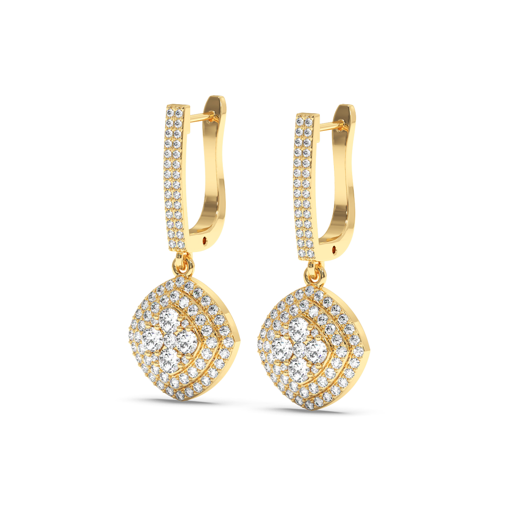 Cercei din aur alb de 14 K, cu diamante de 1.55 ct. Greutatea cerceilor este de aprox. 5.09 grame. Lungimea cerceilor este de 3.10 cm