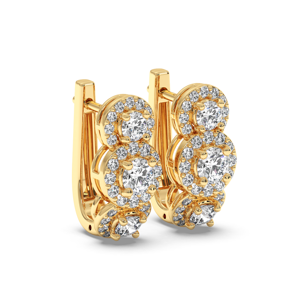 Cercei din aur de 14 K, cu diamante de 1.71ct. Greutatea cerceilor este de aproximativ 5.90 grame. Cerceii se pot face pe comanda si din aur de 18K, galben sau rose. Putem modifica design-ul in functie de bugetul dumneavoastra. Putem alege caracteristicile diamantelor (taietura, culoarea,...