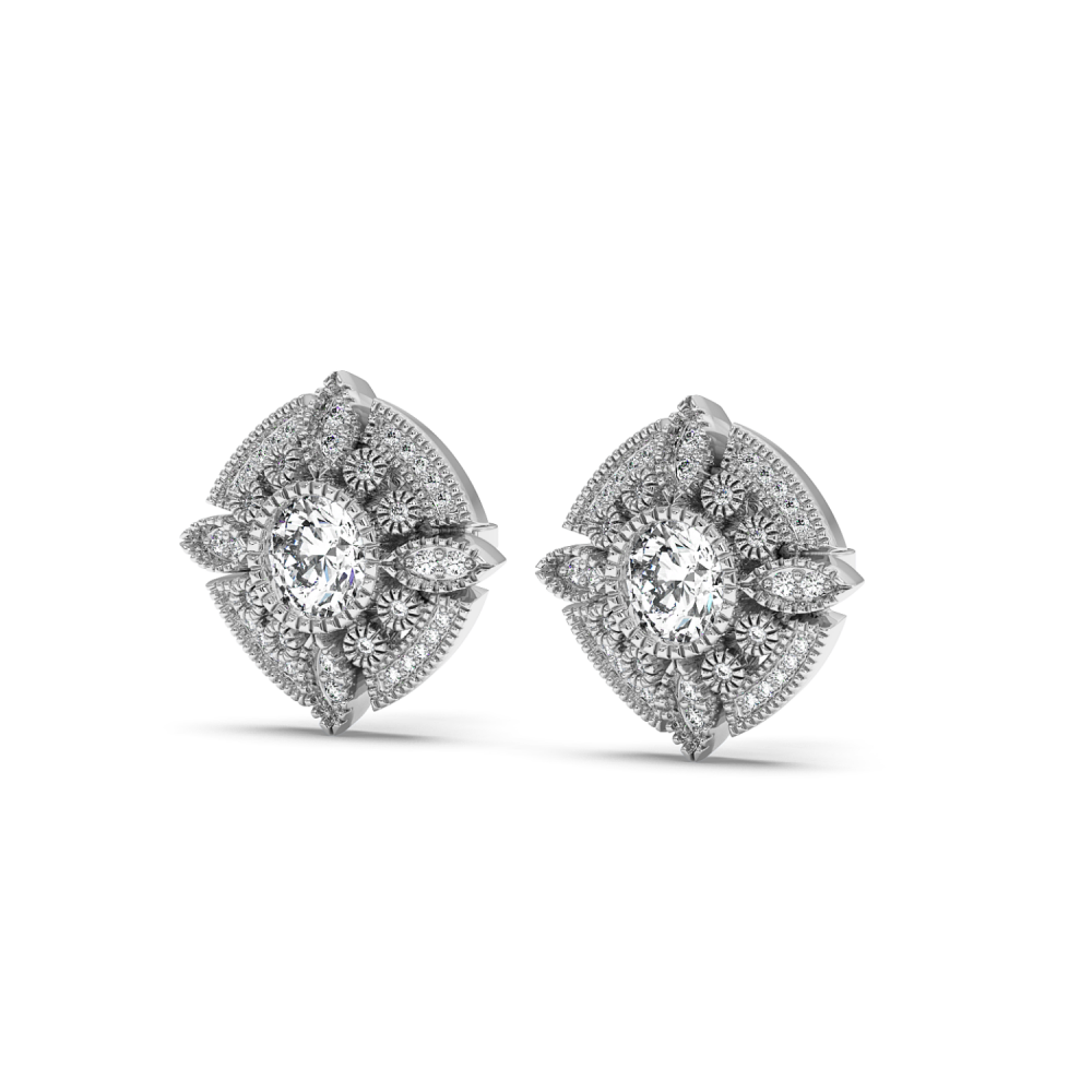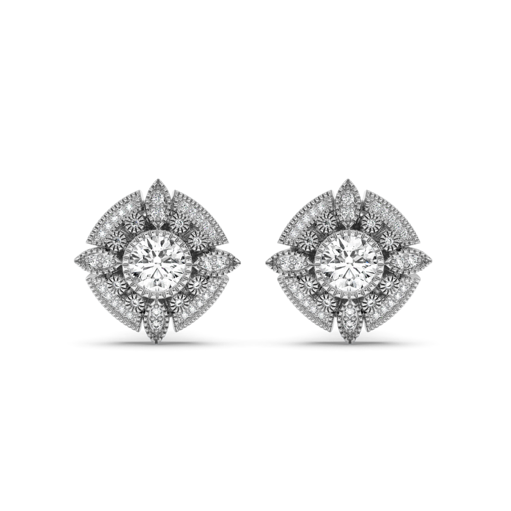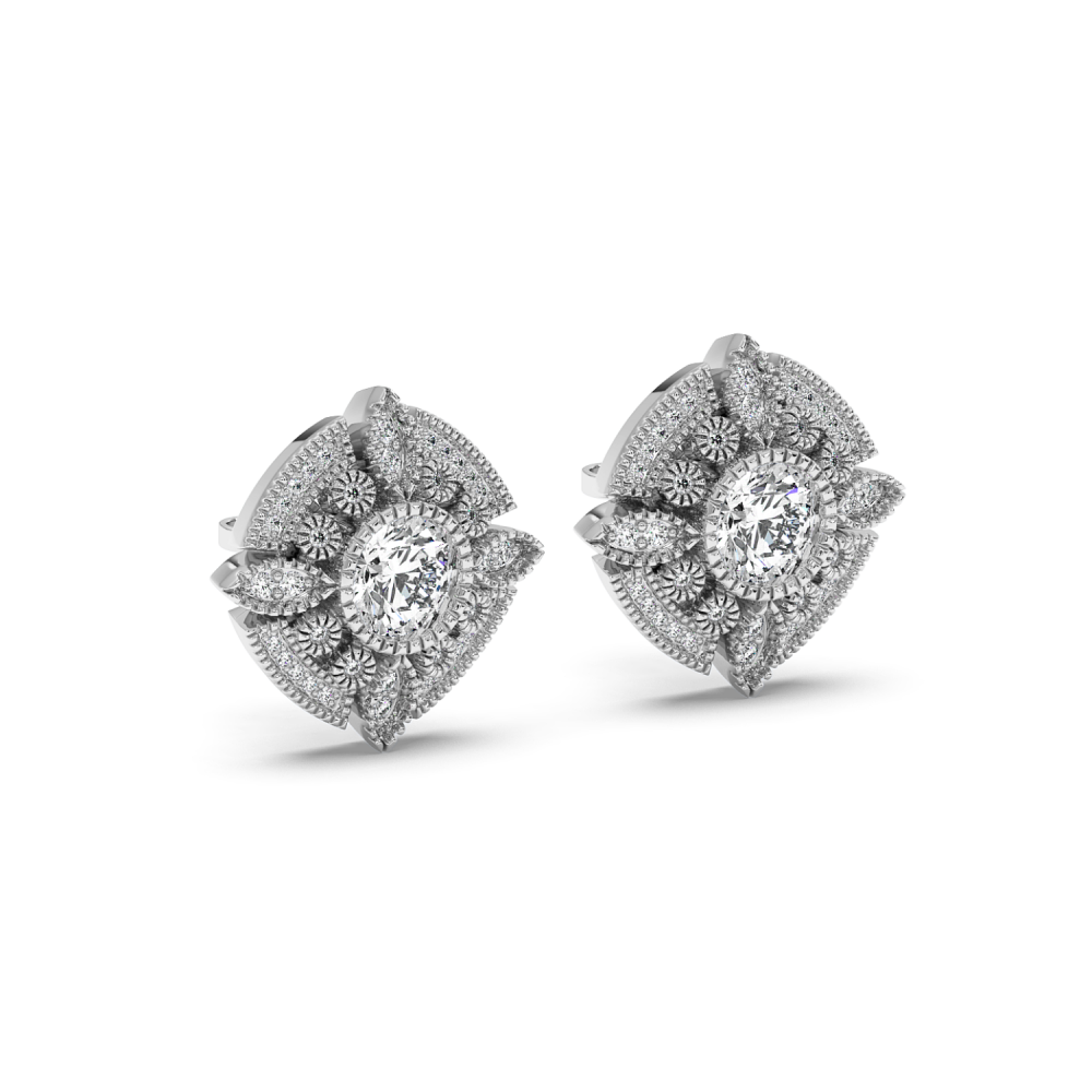Cercei din aur alb de 14 K, cu diamante de 1.83 ct. Greutatea cerceilor este de 10.47 grame.