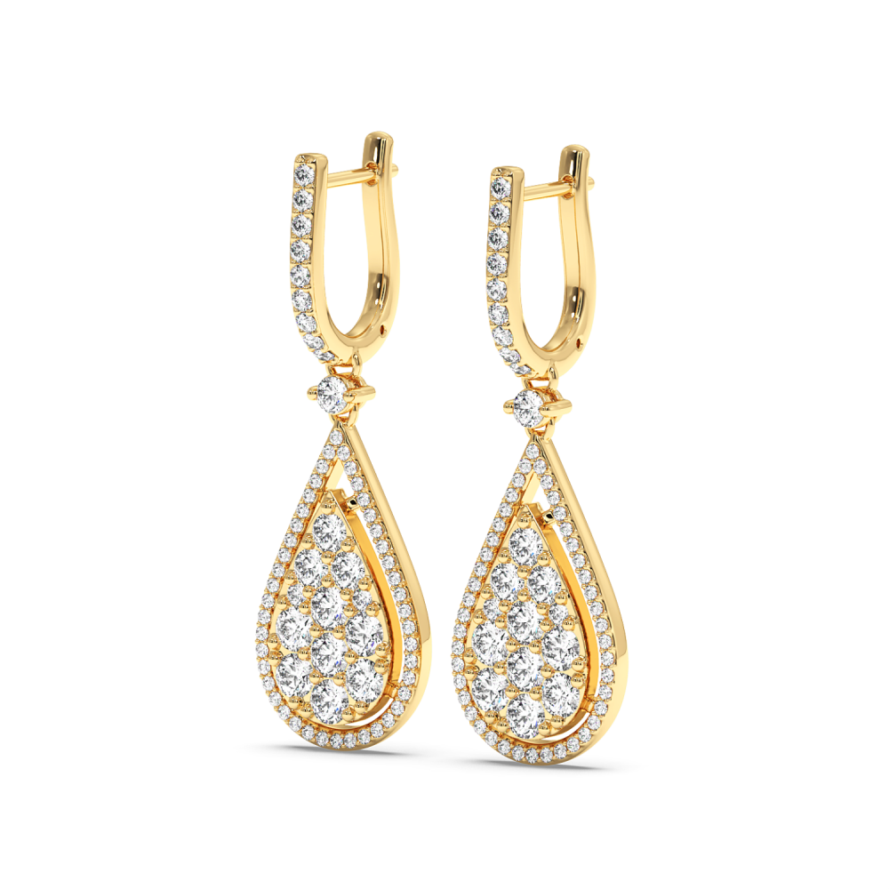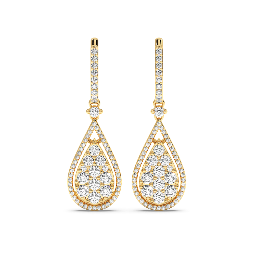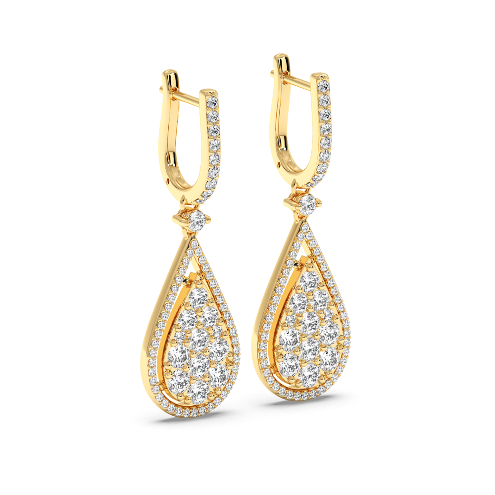 Cercei din aur de 14 K, cu diamante de 1.86ct. Greutatea cerceilor este de aproximativ 7.40 grame. Cerceii se pot face pe comanda si din aur de 18K, galben sau rose. Putem modifica design-ul in functie de bugetul dumneavoastra. Putem alege caracteristicile diamantelor (taietura, culoarea,...