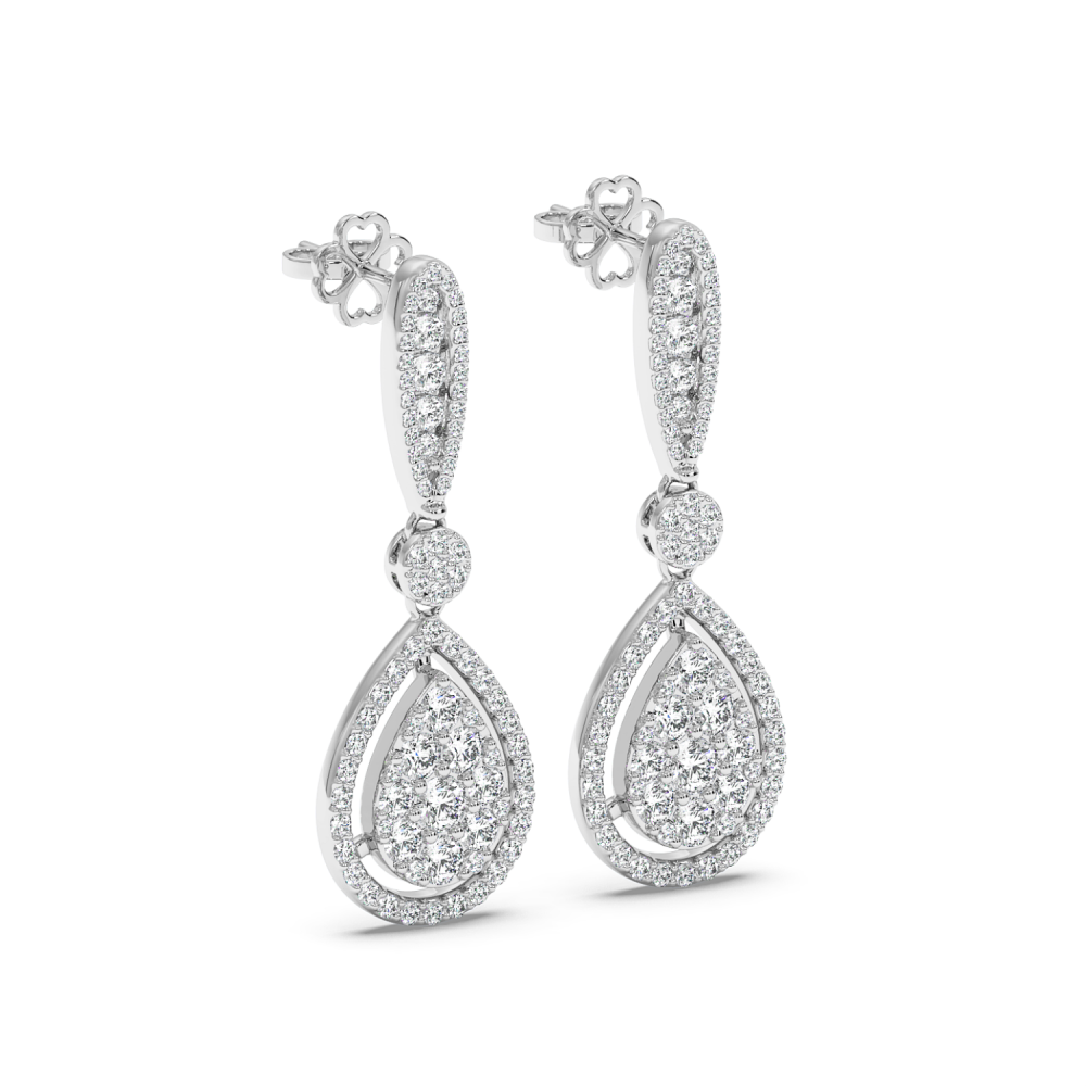Cercei din aur de 14 K, cu diamante de 2.18ct. Greutatea cerceilor este de aproximativ 7.70 grame. Cerceii se pot face pe comanda si din aur de 18K, galben sau rose. Putem modifica design-ul in functie de bugetul dumneavoastra. Putem alege caracteristicile diamantelor (taietura, culoarea,...