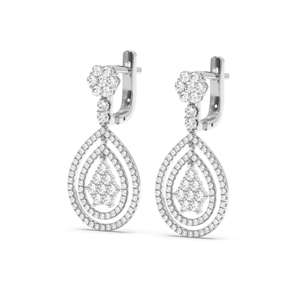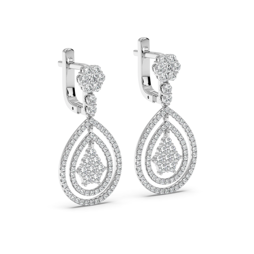 Cercei din aur de 14 K, cu diamante de 2.20ct. Greutatea cerceilor este de aproximativ 9.50 grame. Accesati "SPECIFICATII" pentru mai multe detalii despre acest produs.