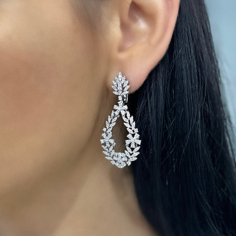 Cercei din aur alb de 18 K, cu diamante de 2.84 ct. Greutatea cerceilor este de 13.78 grame.