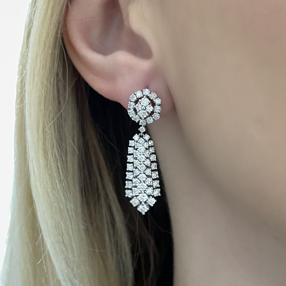 Cercei din aur alb de 18K, cu diamante de 3.53 ct. Greutatea cerceilor este de 8.50 grame.