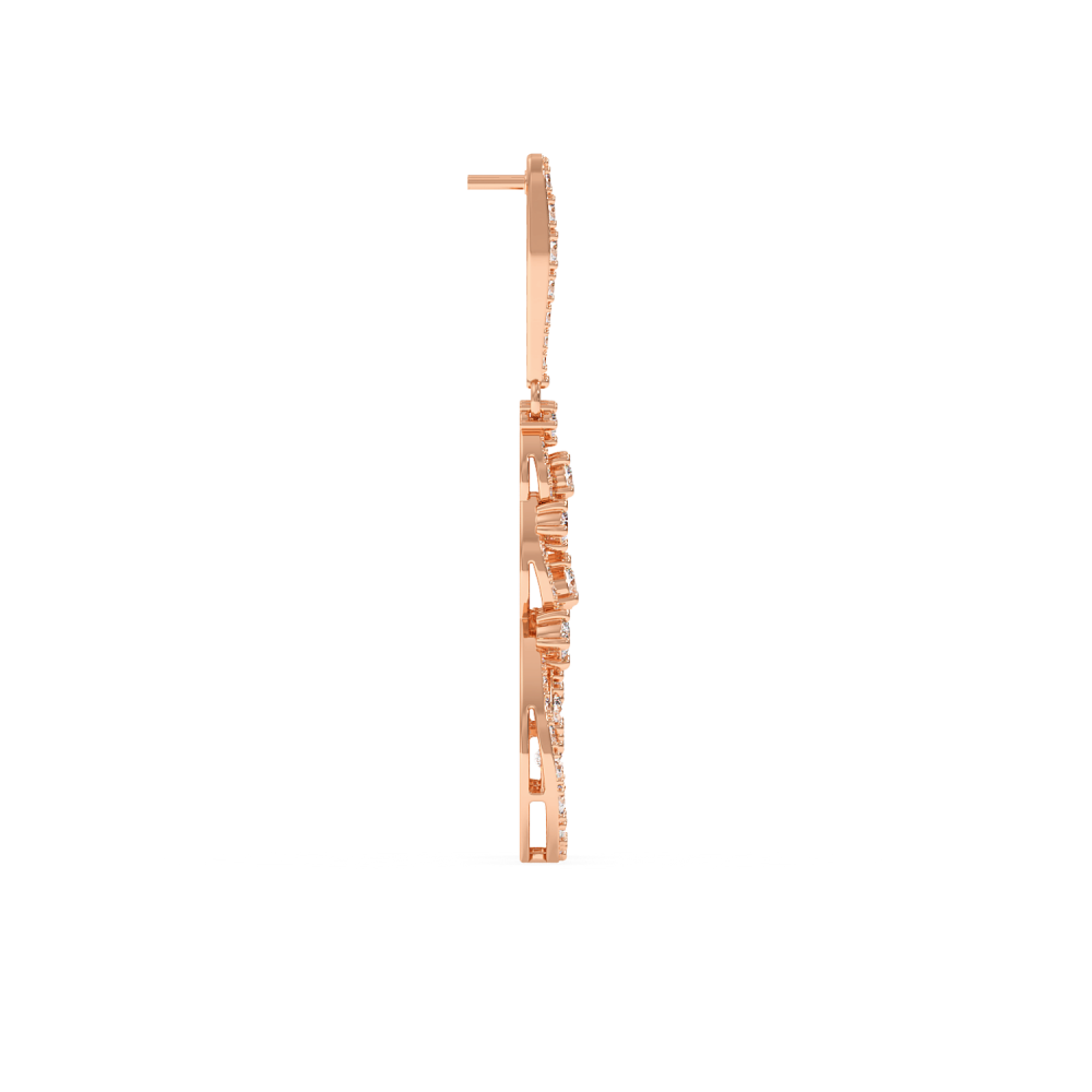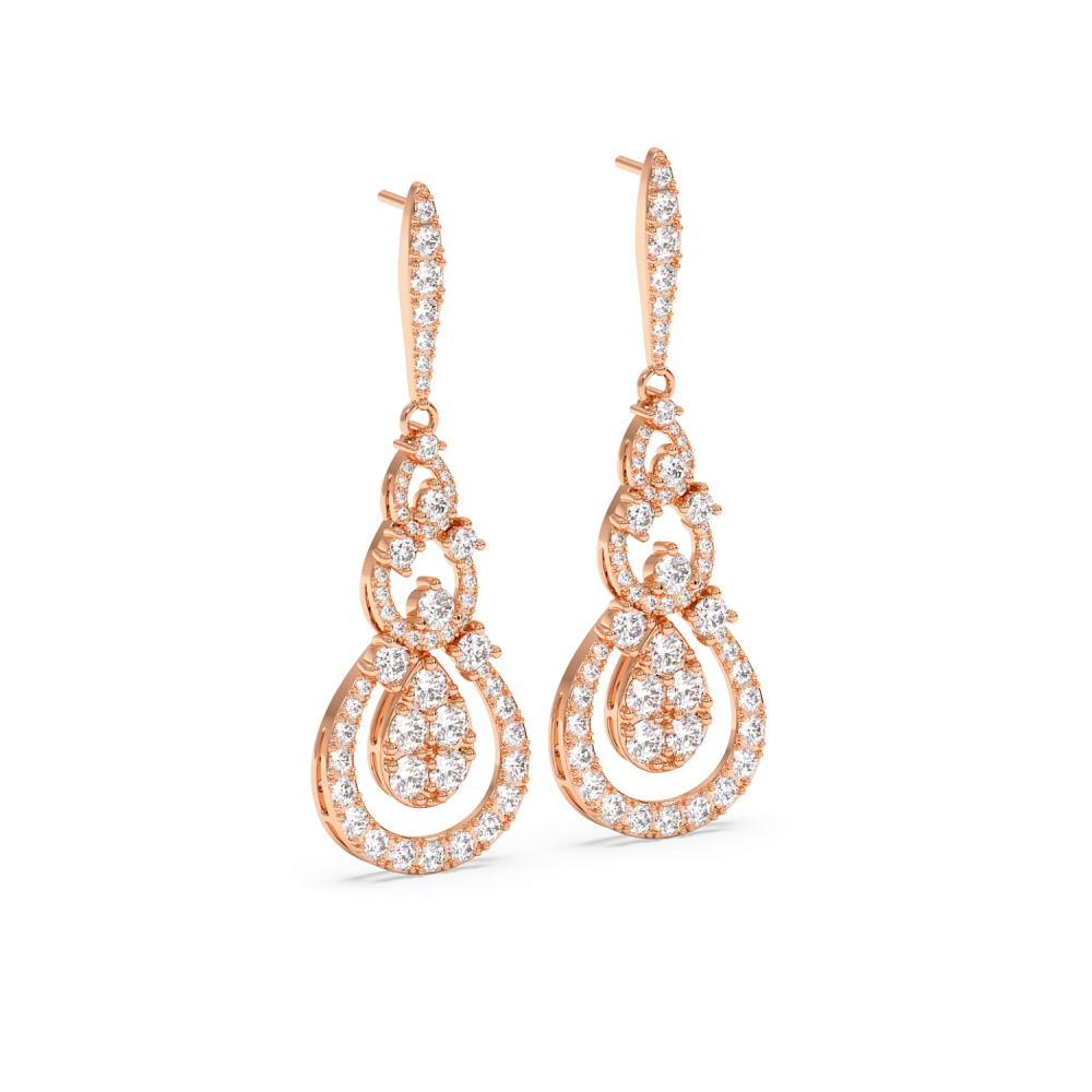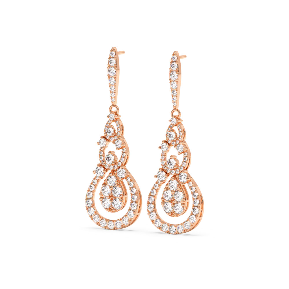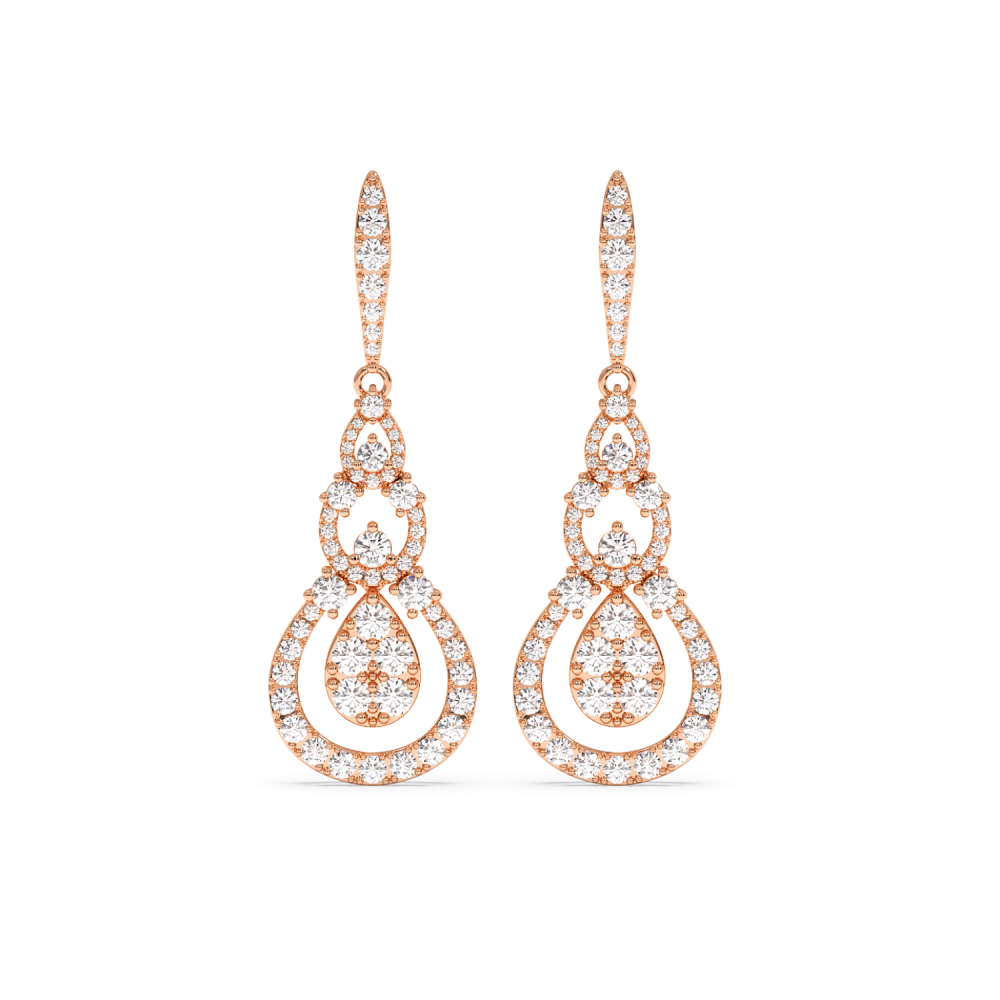 Cercei din aur de 14 K, cu diamante de 5.82 ct. Greutatea cerceilor este de apx 13.1 grame. Lungimea cerceilor este de 5.36 cm.