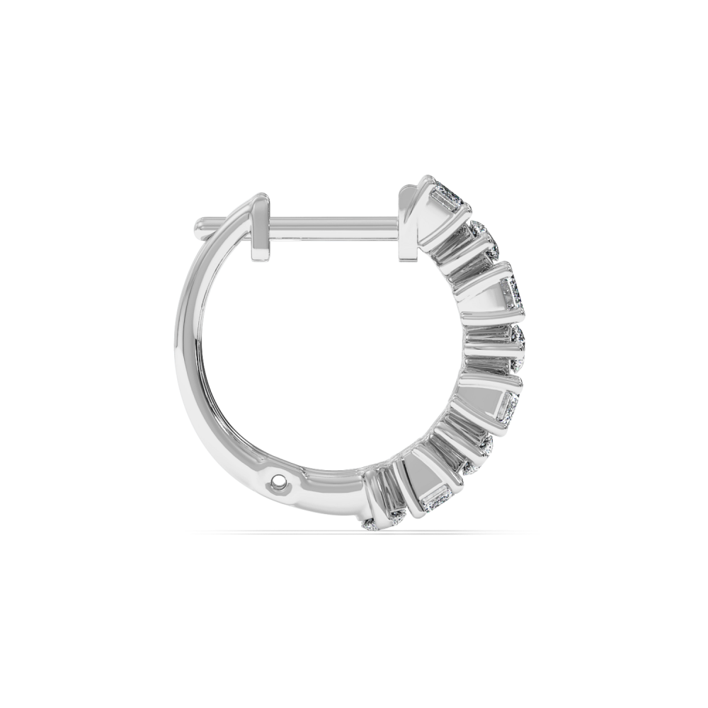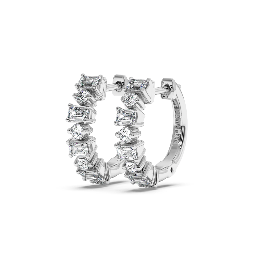 Cercei din aur alb de 14k, diamante emerald de 0.8 ct si Diamante Rotunde de 0.28 ct Greutatea aproximativa a cerceilor este de apx 3.40 grame. Diametrul este de 1.5 cm. Cerceii se pot confectiona din aur alb , galben sau rose.