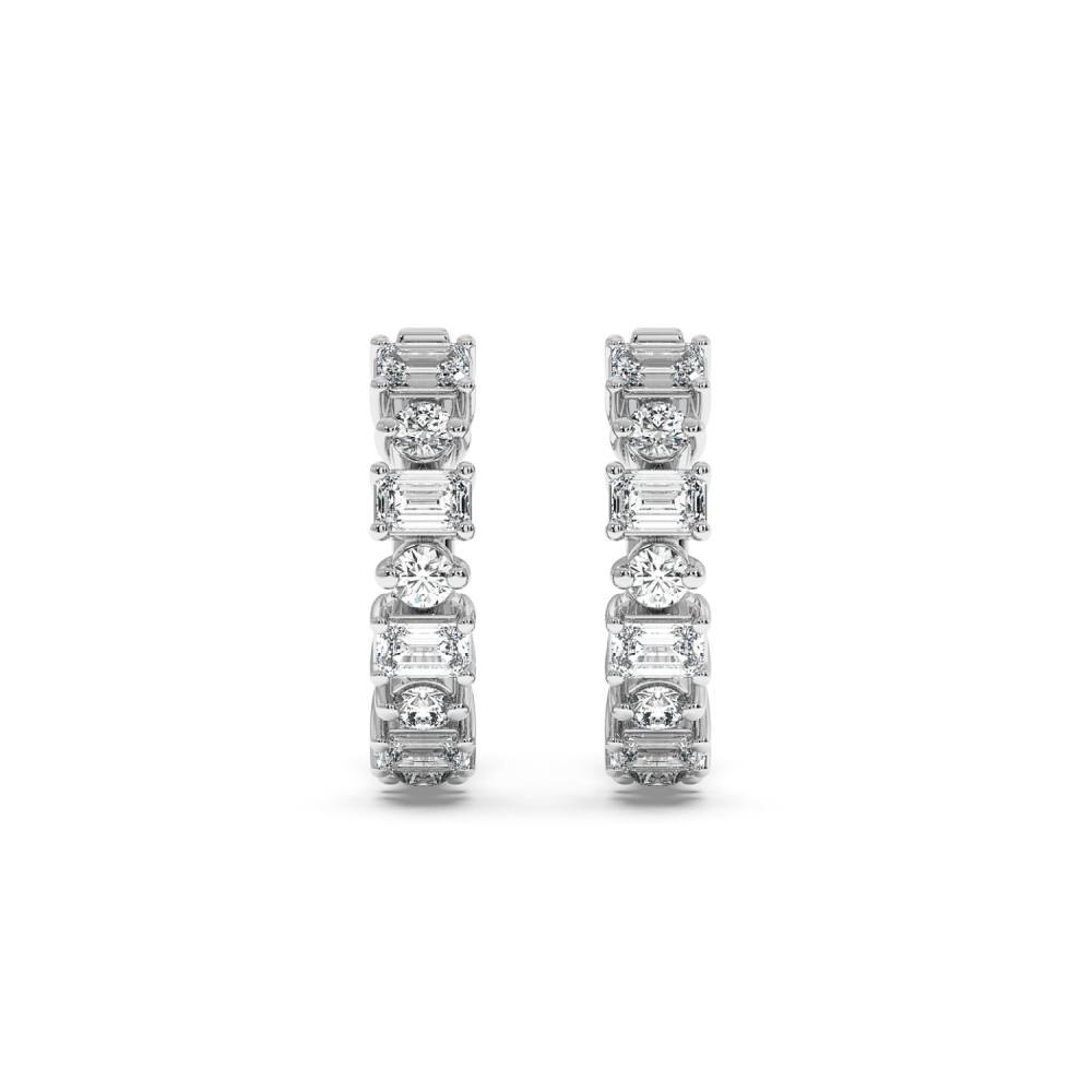 Cercei din aur alb de 14k, diamante emerald de 0.8 ct si Diamante Rotunde de 0.28 ct