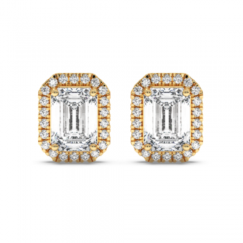Cercei din aur alb de 14k, diamante emerald de 1.30 ct (0.65 ct fiecare). si diamante rotunde de 0.26 ct.