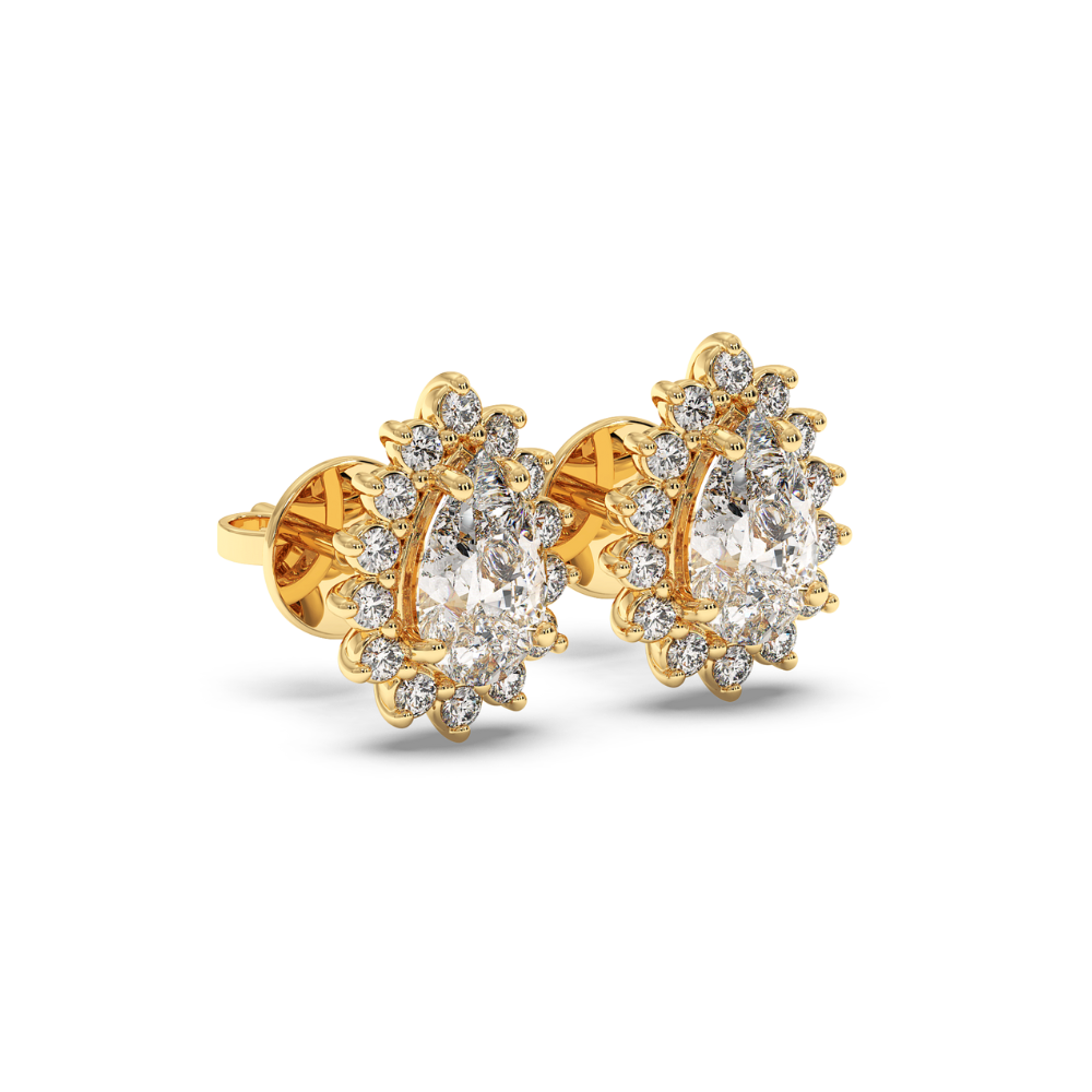 Cercei din aur alb de 14k, diamante pear de 1.48 ct. si diamante rotunde de 0.36 ct. Greutatea aproximativa a cerceilor este de apx 3.38 grame. Cerceii se pot confectiona din aur alb , galben sau rose.