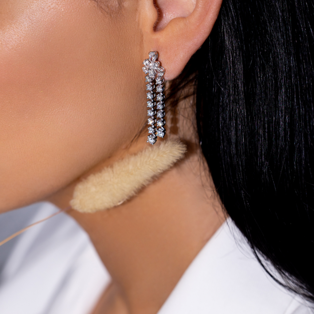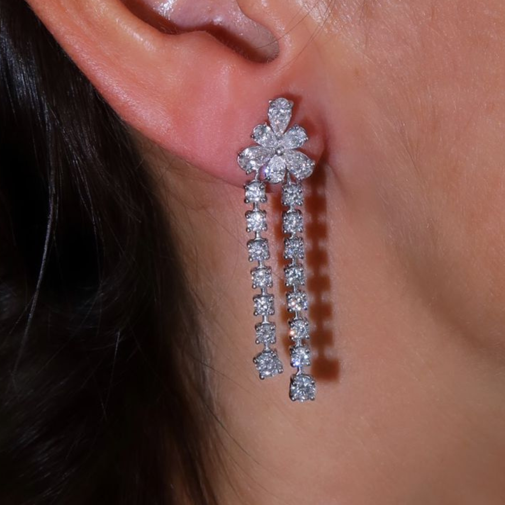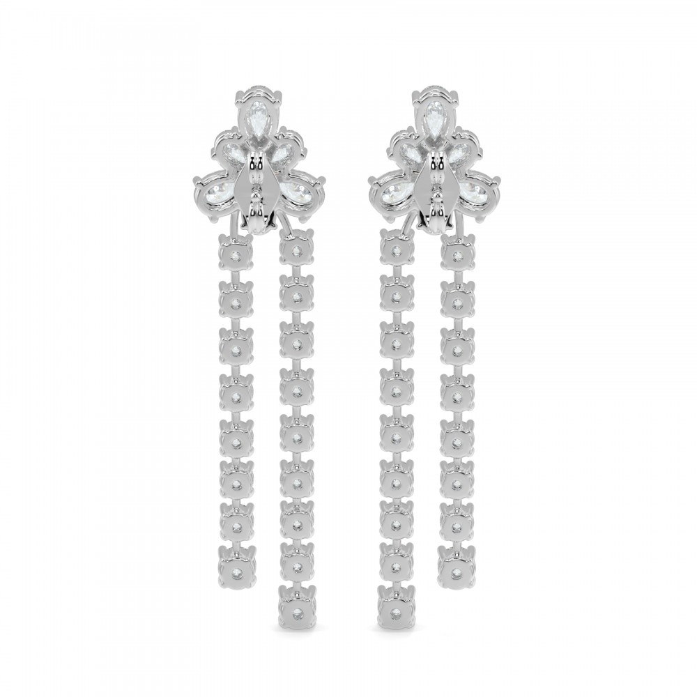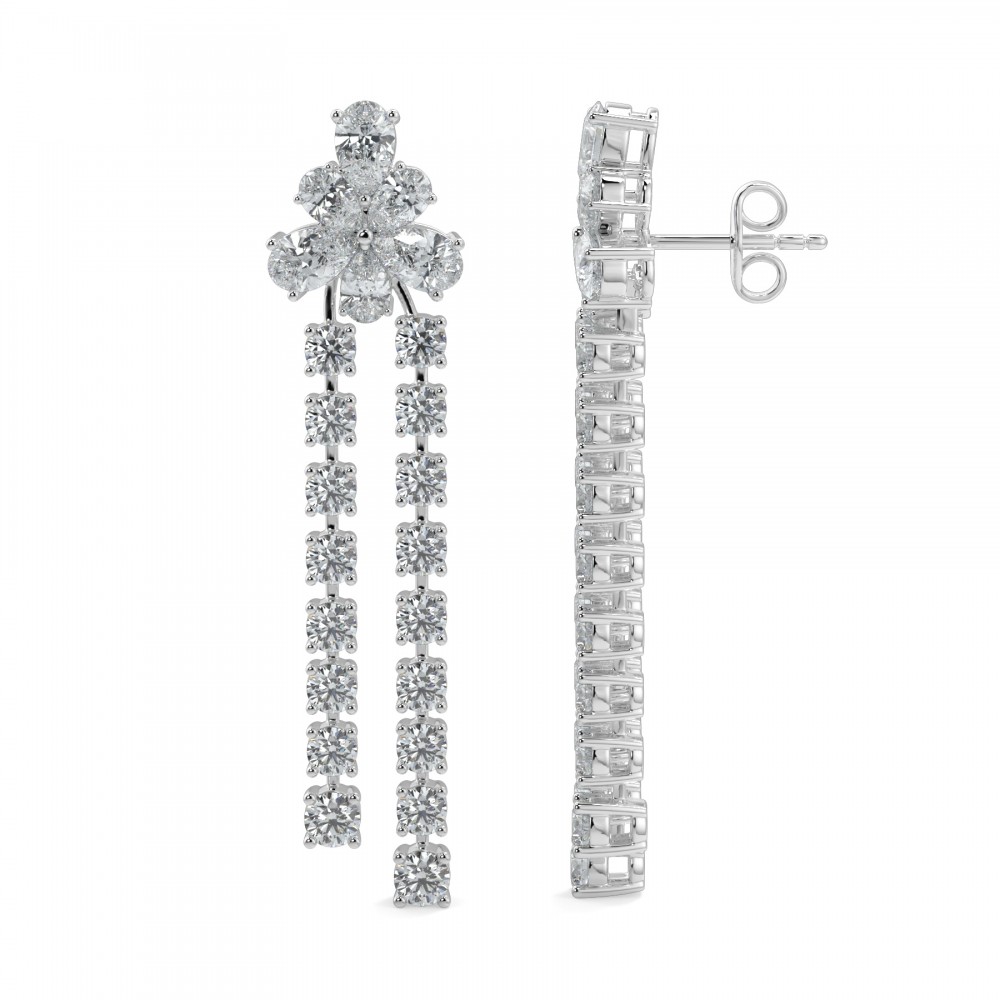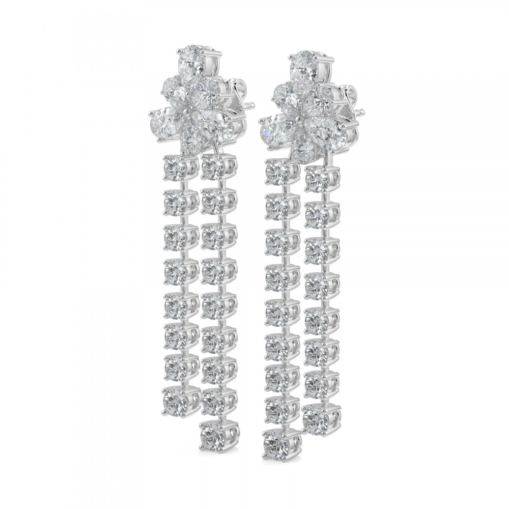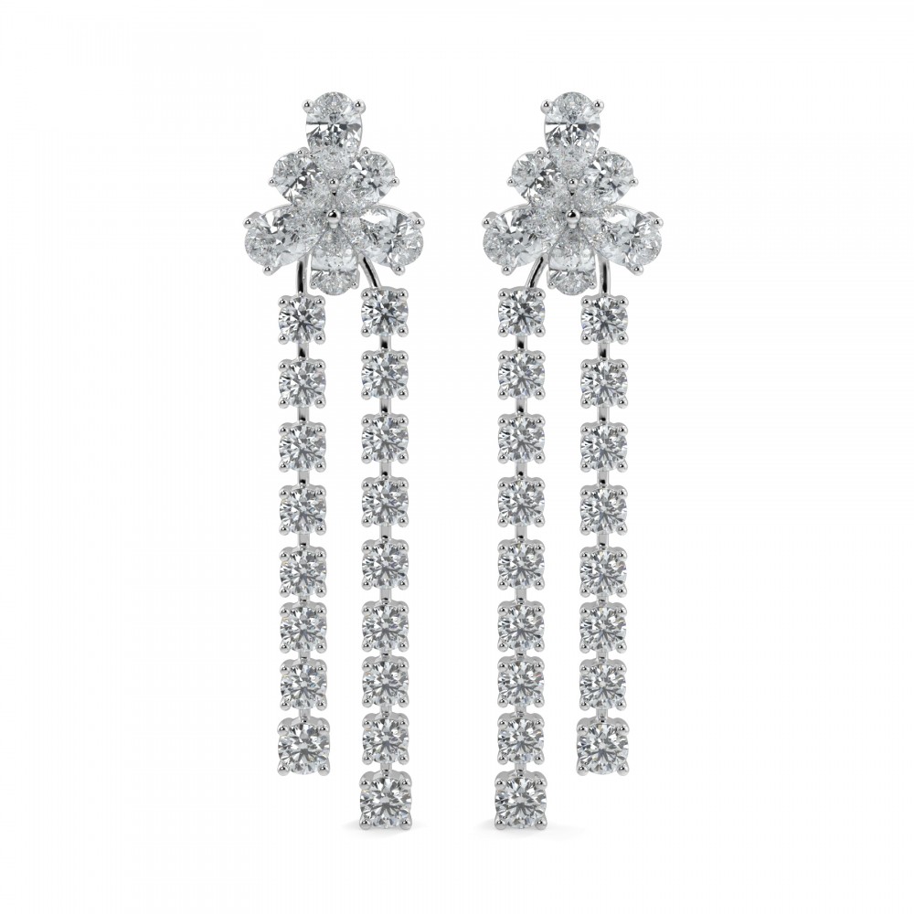 Cercei din aur alb de 18K, cu diamante pear de 1.54 ct si diamante round de 2.26 ct. Greutatea cerceilor este de 8.60 grame.