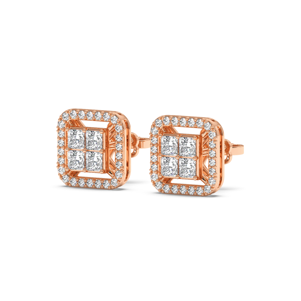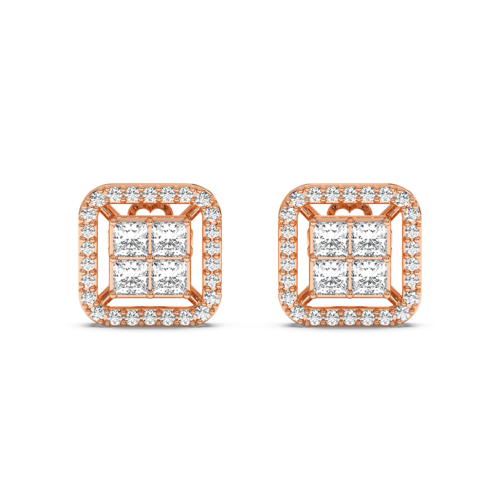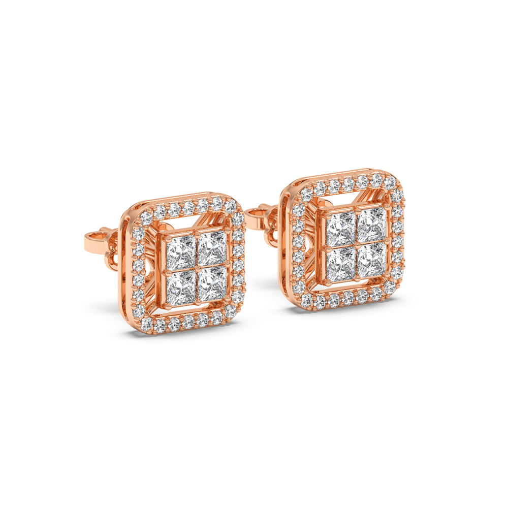 Cercei cu Diamante Princess cut de 0.88ct si Diamante rotunde de 0.29ct