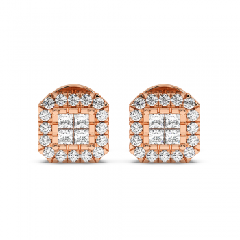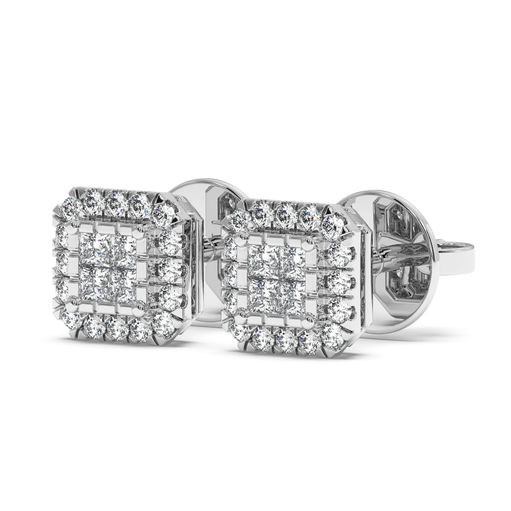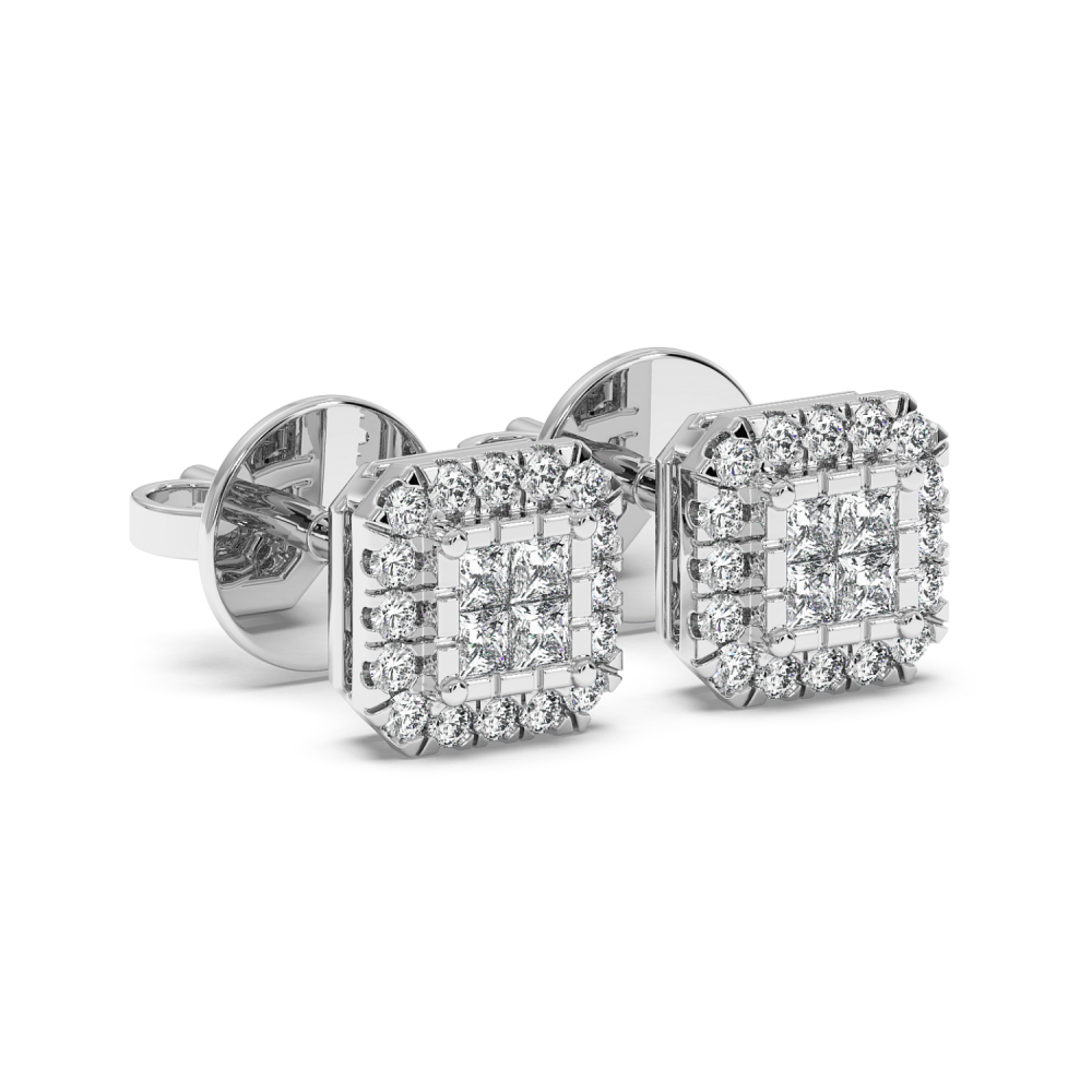Cercei din aur alb de 14 K, cu Diamante Princess de 0.21 ct si diamante rotunde de 0.16 ct. Greutatea cerceilor este de 2.7 grame.
