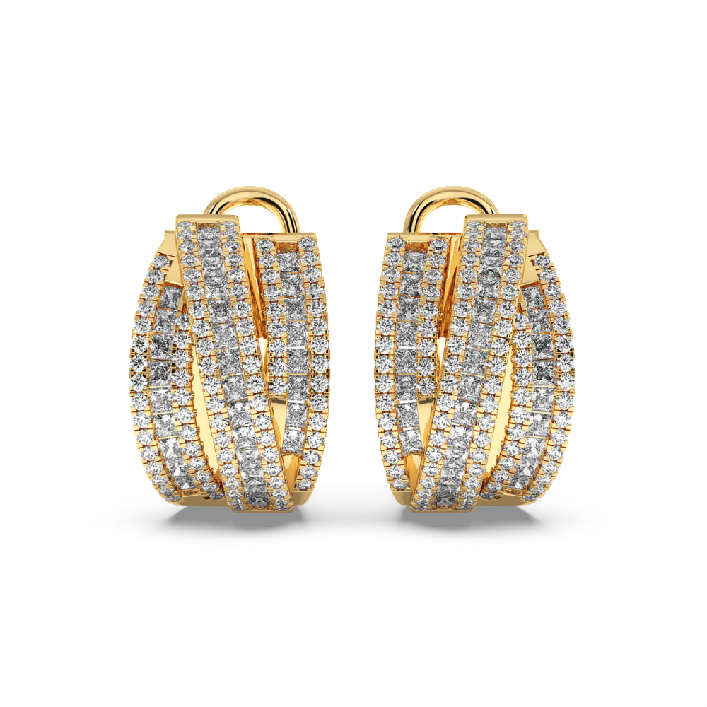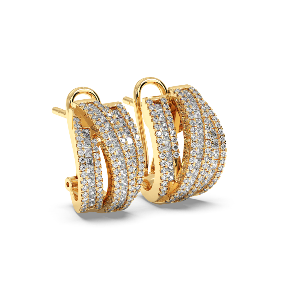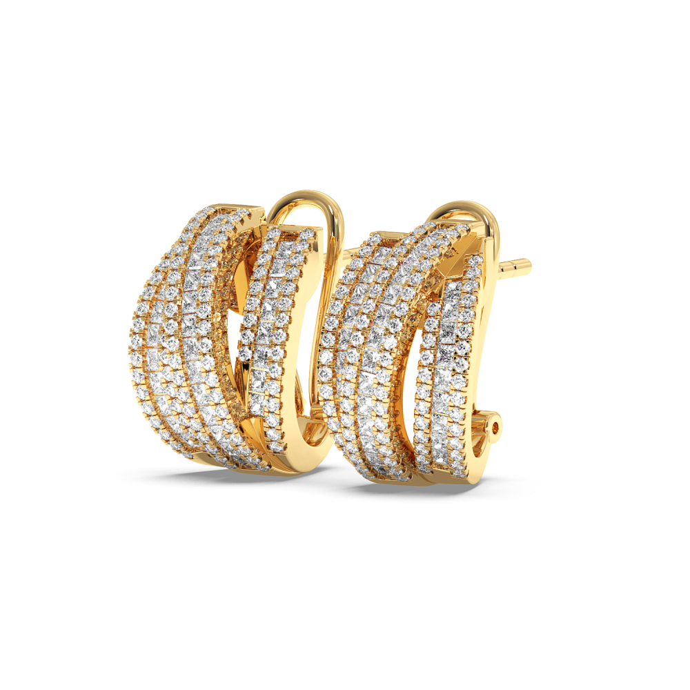 Cercei din aur alb de 14 K, cu Diamante Princess de 1.67 ct si diamante rotunde de 0.92 ct. Greutatea cerceilor este de 15.68 grame.