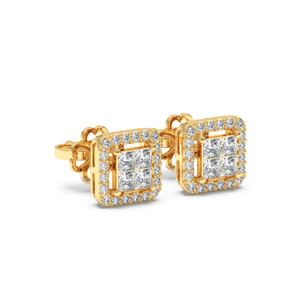 Cercei cu Diamante rotunde de 0.20 ct si Diamante Princess de 0.40 ct